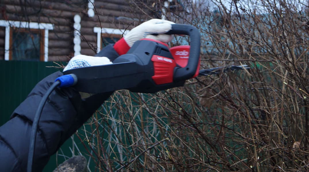 Да, снова о безопасности. Любой режущий инструмент заставляет помнить о ней каждую секунду, отвлекаться нельзя. Как нельзя надевать одежду со свисающими деталями — шарфы и прочие завязки тут запрещены априори. Особо осторожные могут использовать защитную маску или очки. Хоть кусторез и не швыряется ветками, но мелкие частички вполне могут падать сверху, если вы режете над головой.