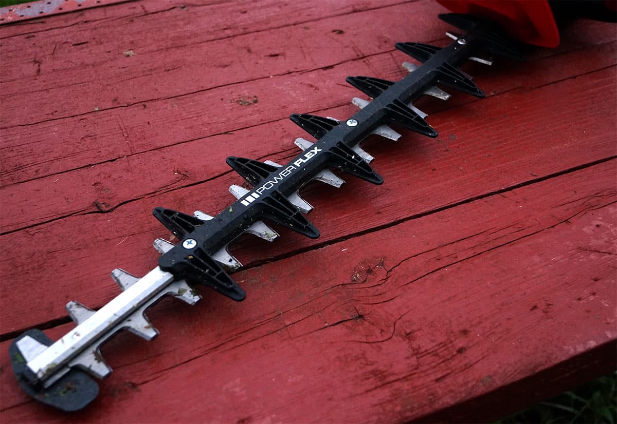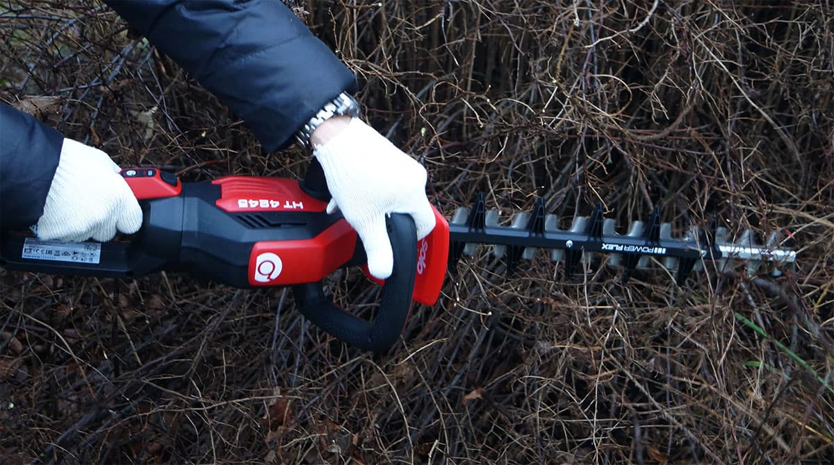 Кусторез почти не требует ухода. Благодаря тому, что металлические части работают впритирку друг к другу, между зубьев не остается никакого мусора. Слегка обмахнуть щеткой — вот и весь уход.