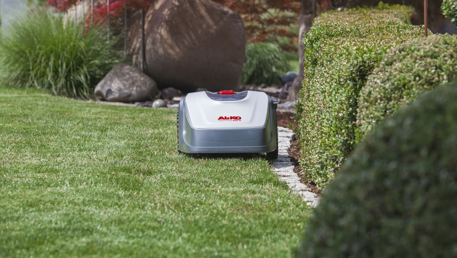 Согласно установленному графику робот автоматически выезжает в заданное время с зарядной базы и свободно перемещается по территории, ограниченной кабелем. Во время перемещения осуществляется равномерное кошение травы на установленной высоте. При каждом запуске двигателя косильного механизма изменяется его направление вращения, что удваивает срок службы ножей. Ориентация устройства осуществляется с помощью датчиков, которые обнаруживают магнитное поле ограничительного кабеля. Если робот сталкивается с препятствием, верхняя часть корпуса слегка смещается и срабатывает датчик столкновения. Устройство останавливается, а затем продолжает двигаться в другом направлении. Если робот попадает в ситуацию, когда эксплуатация невозможна, на дисплее и в приложении появляется сообщение. При разряде аккумулятора устройство возвращается к базовой станции вдоль ограничительного кабеля.