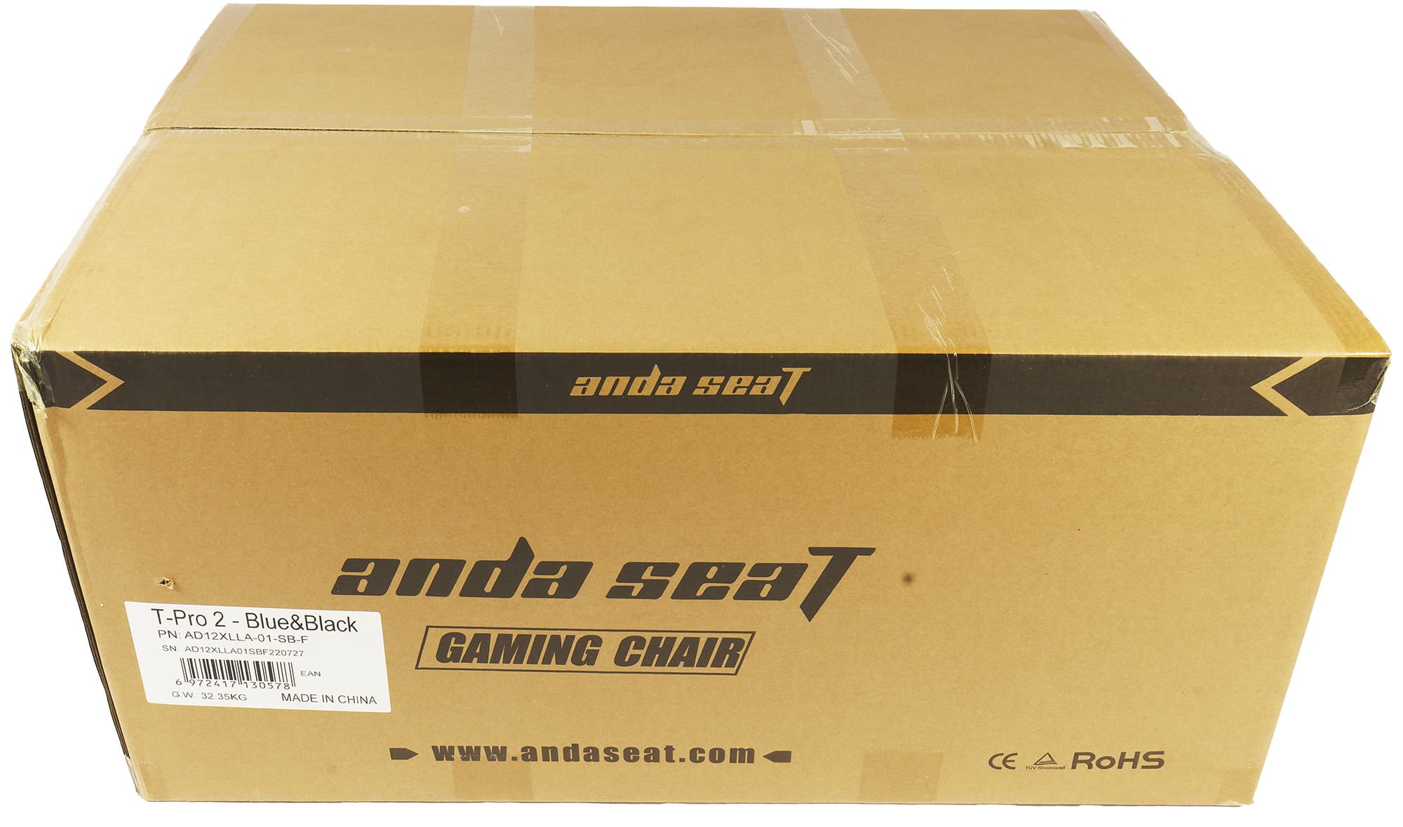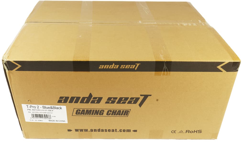 Кресло AndaSeat T-Pro 2 появилось у нас в коробке из неокрашенного картона. На передней стороне мы увидели только название фирмы и адрес ее сайта, а также тип устройства, а на боковых и того не было.