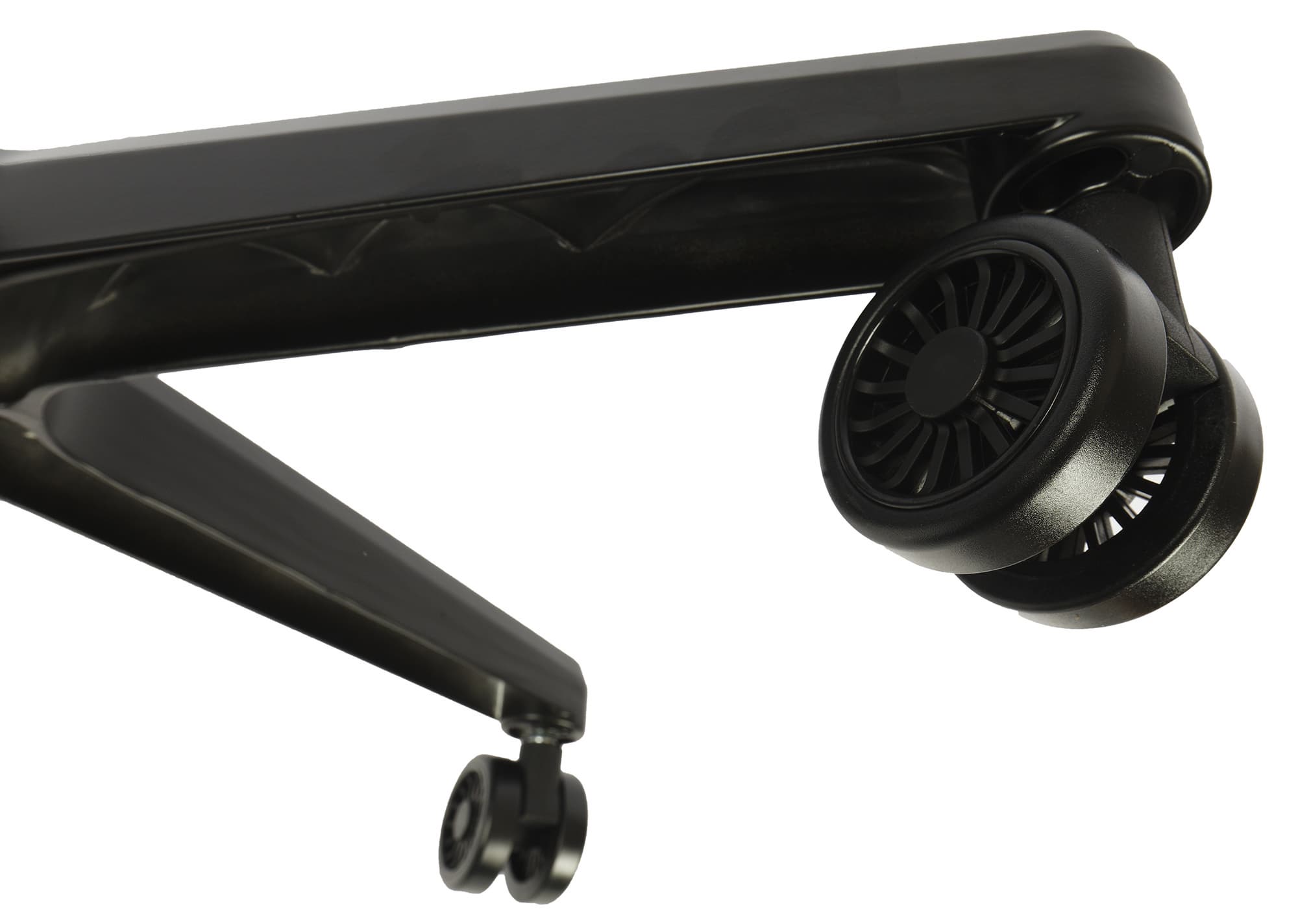 Первое, с чего стоит начать сборку — установить ролики в отверстия крестовины. Вставляются они без усилия и удерживаются надежно.