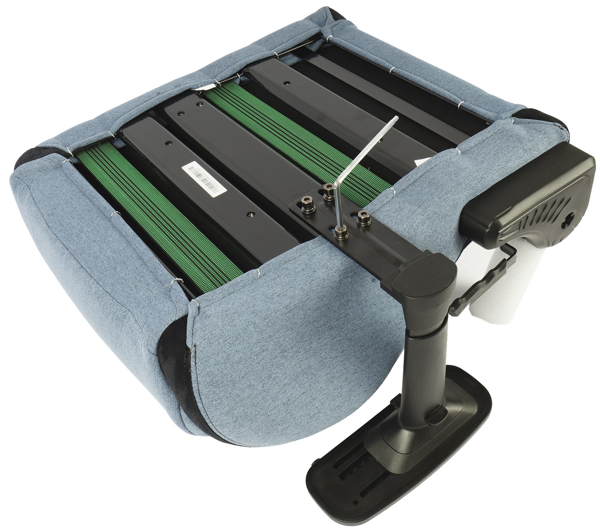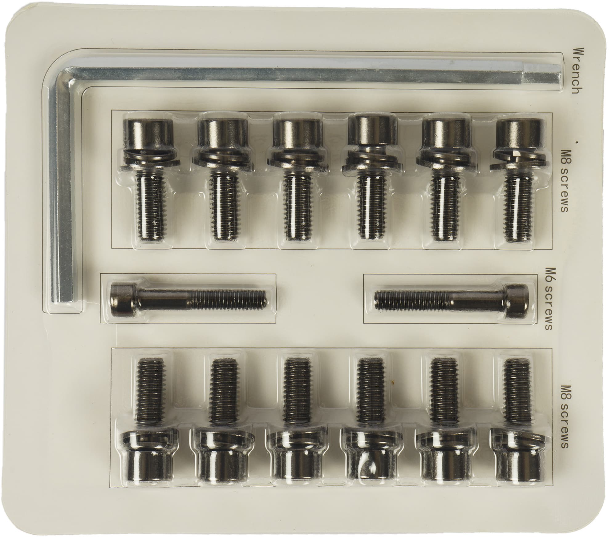 Теперь настает время распаковать блистер с метизами. В комплект кресла входят двенадцать винтов М8, укомплектованных двумя шайбами — обычной и пружинной, а также два винта М6 и Г-образный шестигранный ключ, подходящий для обоих типов добротно выглядящего крепежа. Хотя на собранном кресле головки винтов не видны, изготовитель позаботился даже о нанесении анодированного покрытия на них.
