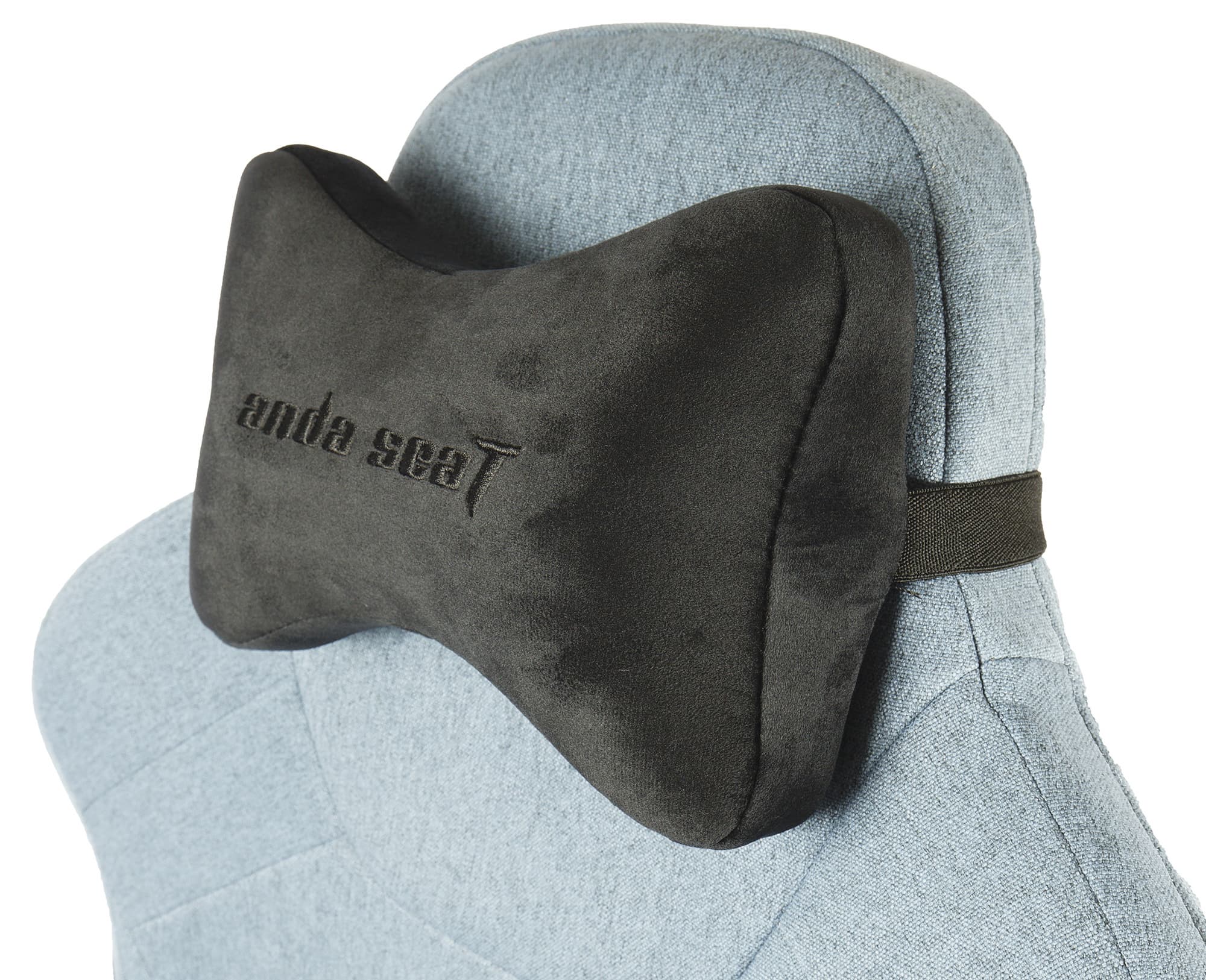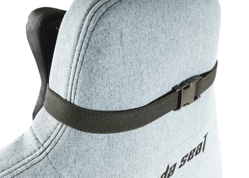 Подушка подголовника выполнена из более мягкой пены с эффектом памяти. Эта деталь крепится к верхней части спинки: надо просто надеть кольцо из резинки на подголовник и отрегулировать по высоте.