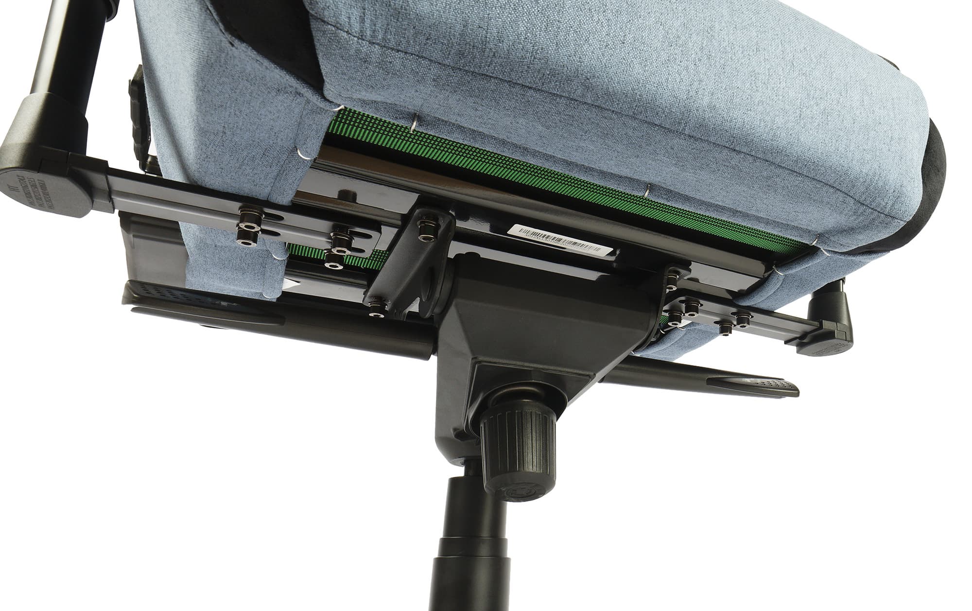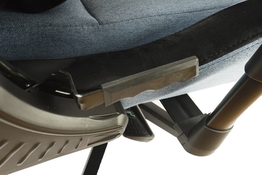 На внутренней стороне у каждого из них две кнопки. Первая позволяет отрегулировать горизонтальный разлет в диапазоне от 53 до 56 сантиметров по внутренней стороне. Еще по паре сантиметров с каждой стороны добавляют крепления оснований подлокотников в нижней части кресла.