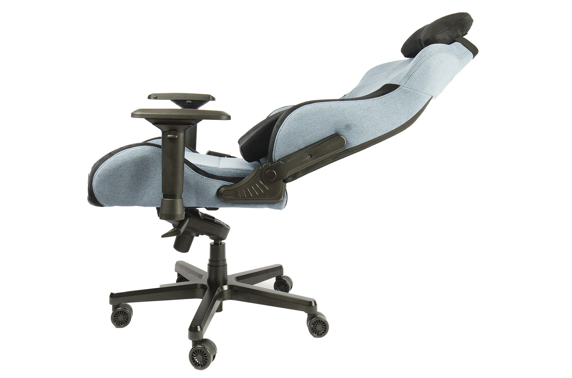 Газовый лифт мягко и практически бесшумно поднимает и опускает сиденье в достаточно широком диапазоне, чтобы можно было найти оптимальное положение. То же касается изменения положения спинки: оно дает возможность варьировать позу, не вставая, что весьма полезно при длительной работе или игре. В каждом из положений спинка фиксируется надежно, нет ни малейшего люфта. Смена положения плавная, кресло не бьет зазевавшегося седока по спине.