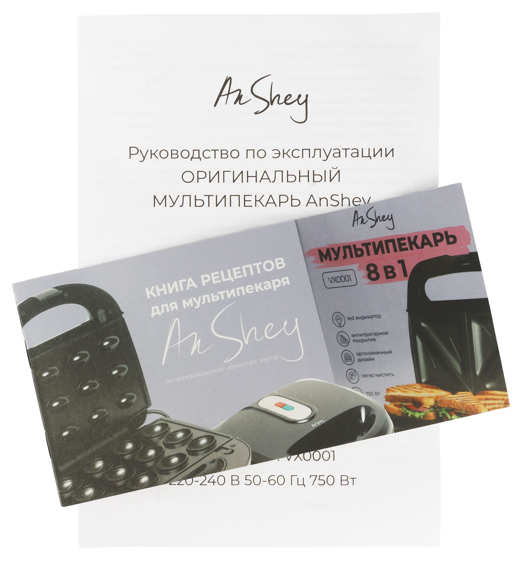 Наше знакомство с брендом AnShey началось с кухонной техники, а именно — с мультипекаря AnShey VX0001. Производитель заявляет устройство «8 в 1», легкую очистку и широкий выбор насадок для приготовления завтраков, быстрых перекусов и сладкой выпечки. Более того, в нем можно готовить не только вафли или сэндвичи, но и полноценные стейки из мяса или рыбы.