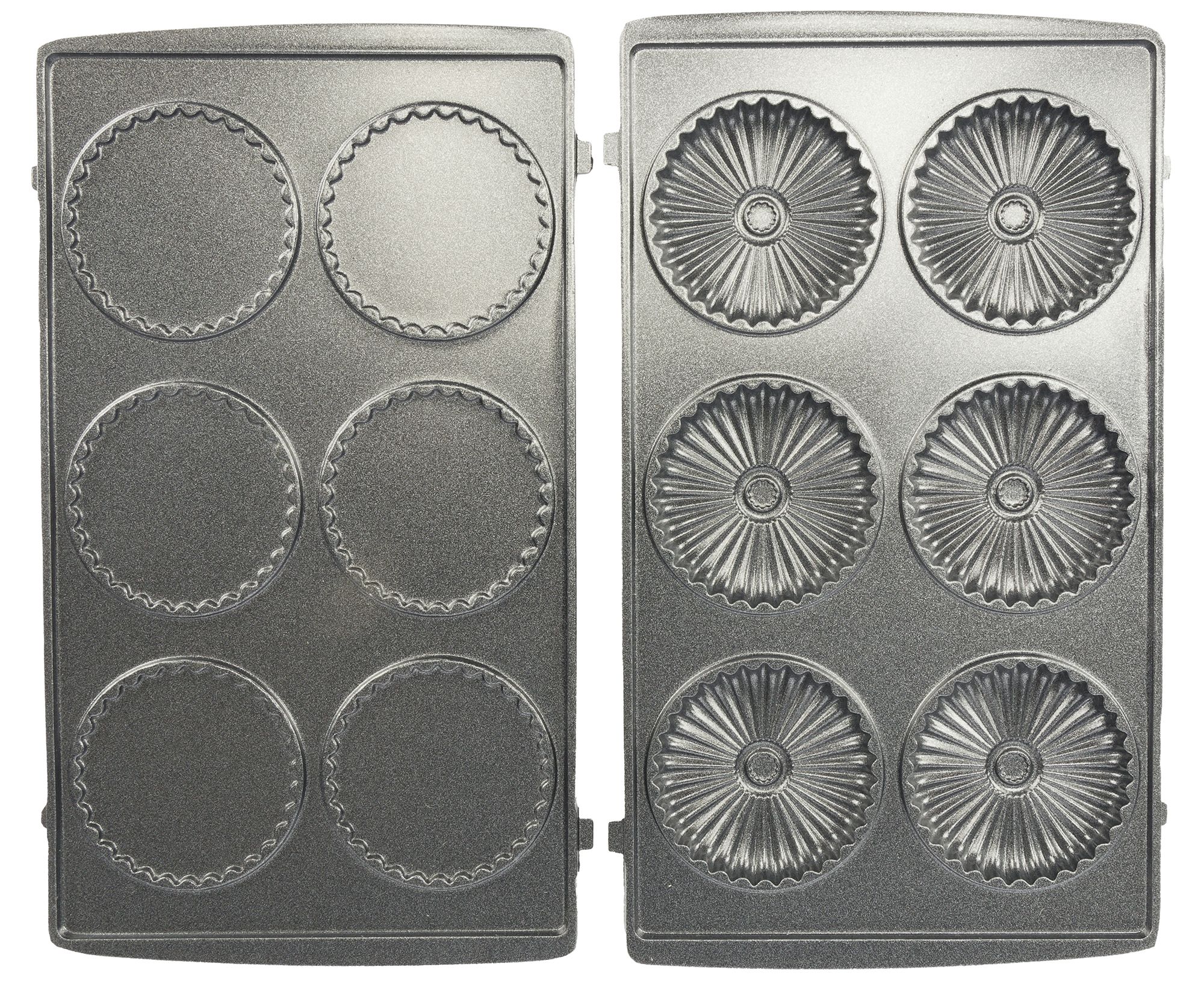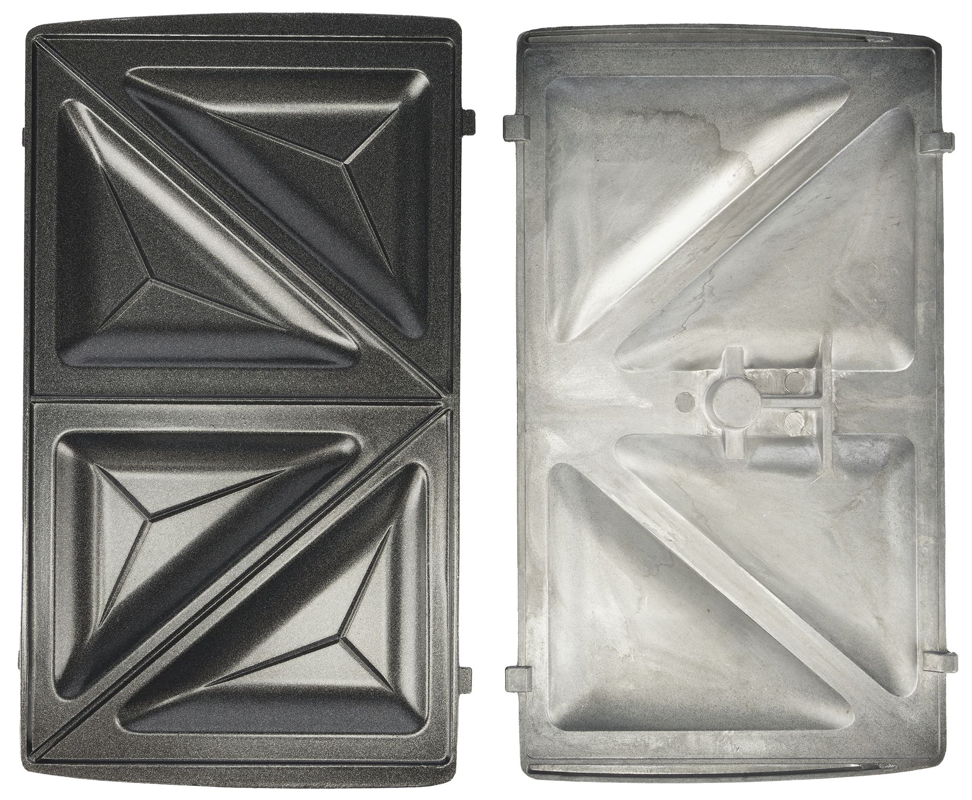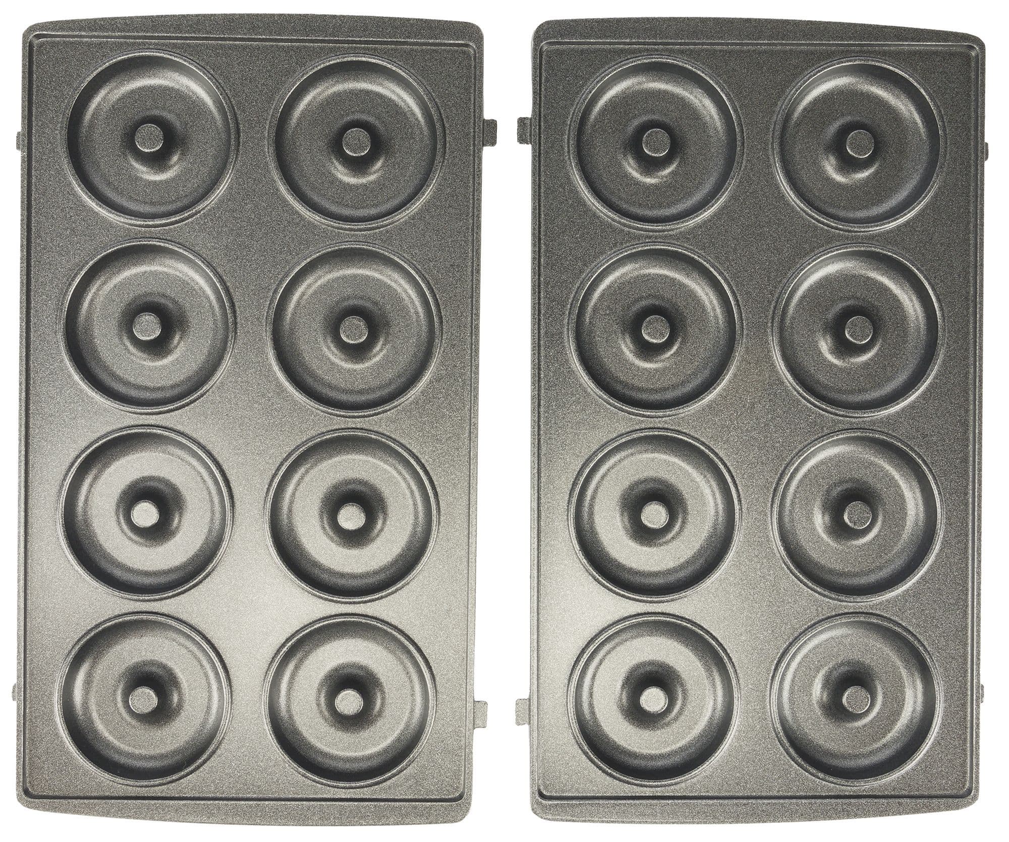 Все сменные формы состоят из двух частей — верхней и нижней, и имеют антипригарное покрытие. На фотографии хорошо видны выпуклые боковые части, которыми формы фиксируются в приборе при установке.
