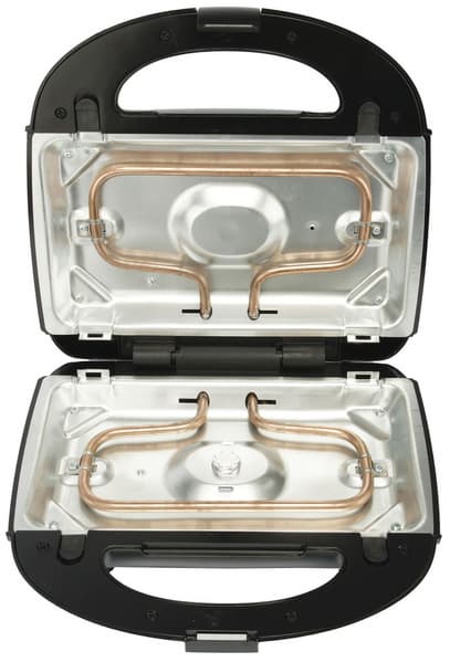 Сами панели выполнены из металла: внутренняя поверхность покрыта антипригарным слоем, обеспечивающим удобство приготовления и легкую очистку, а внешняя сторона, обращенная к нагревательным элементам, оставлена из неокрашенного металла.