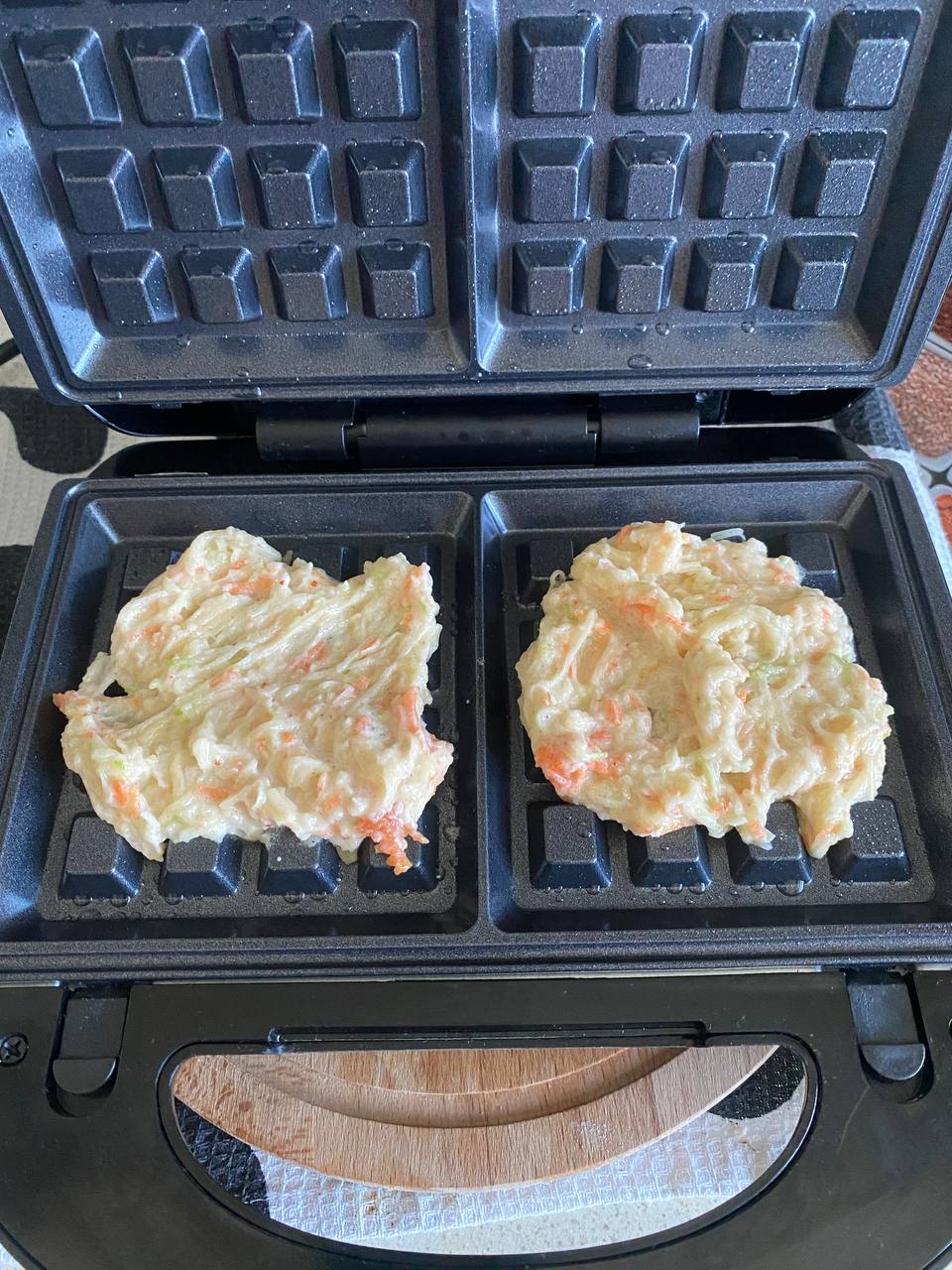 Полученную смесь выложили в форму для вафель.