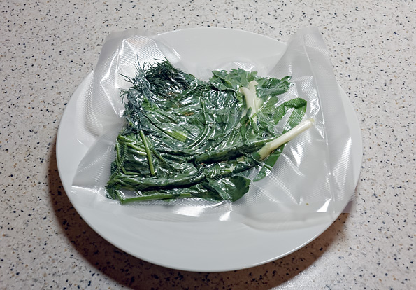 Спустя неделю зелень оказалась вполне пригодна к использованию. Конечно, «товарный вид» она потеряла (в вакуумном пакете ее изрядно помяло), но на вкусовых качествах это практически не сказалось.