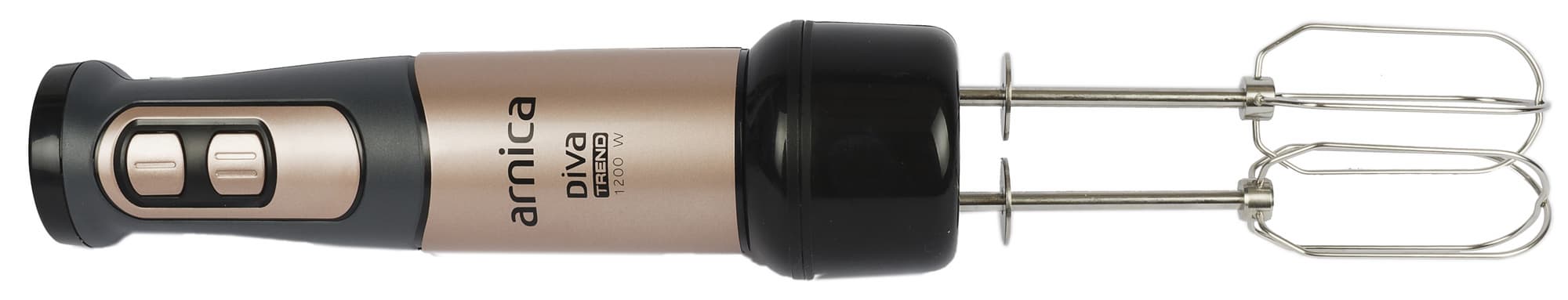 Знакомство с брендом Arnica мы начали с пылесосов, а из приборов, относящихся к кухонной бытовой технике бренда, до сегодняшнего дня нам довелось исследовать только измельчитель. Теперь же мы познакомимся с Arnica Diva Trend GH21593, устройством мощностью 1200 Вт, оснащенным тремя функциями: погружного блендера, венчика и измельчителя.