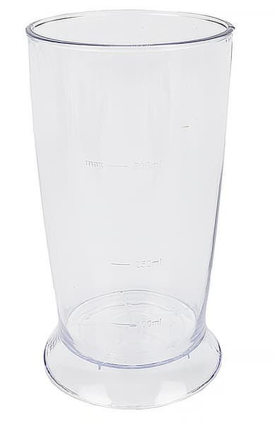Блендер комплектуется стаканом для смешивания объемом 700 мл. Емкость изготовлена из прочного прозрачного пластика. На передней стенке предусмотрена шкала с рисками в ml.