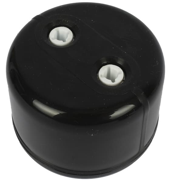 Закрывается чаша крышкой из прочного черного пластика. Деталь надевается и фиксируется благодаря совмещению граней верха чаши с гранями на внутренней стороне самой крышки. В возвышении находится гнездо для установки моторного блока.