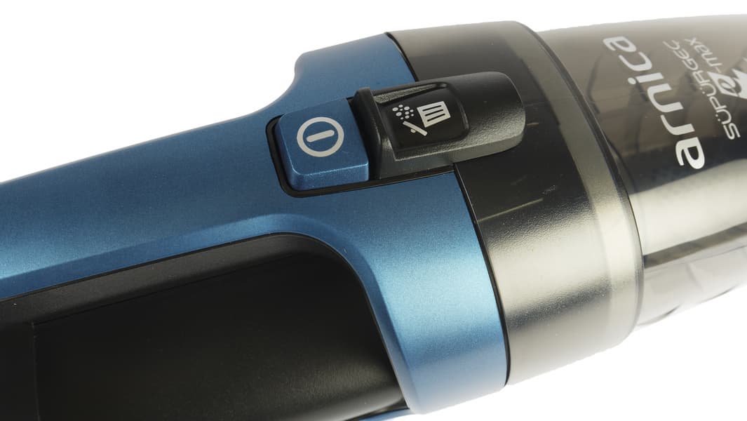 При желании использовать повышенные обороты на гладком полу приходится использовать механический регулятор силы всасывания, размещенный на щетке. А вот для мягких напольных покрытий — ковров, ковролина и ковриков — максимальный уровень оборотов подходит идеально. С помощью Arnica E-Max можно добиться глубокой и тщательной очистки, сравнимой с качеством уборки мощного напольного пылесоса.