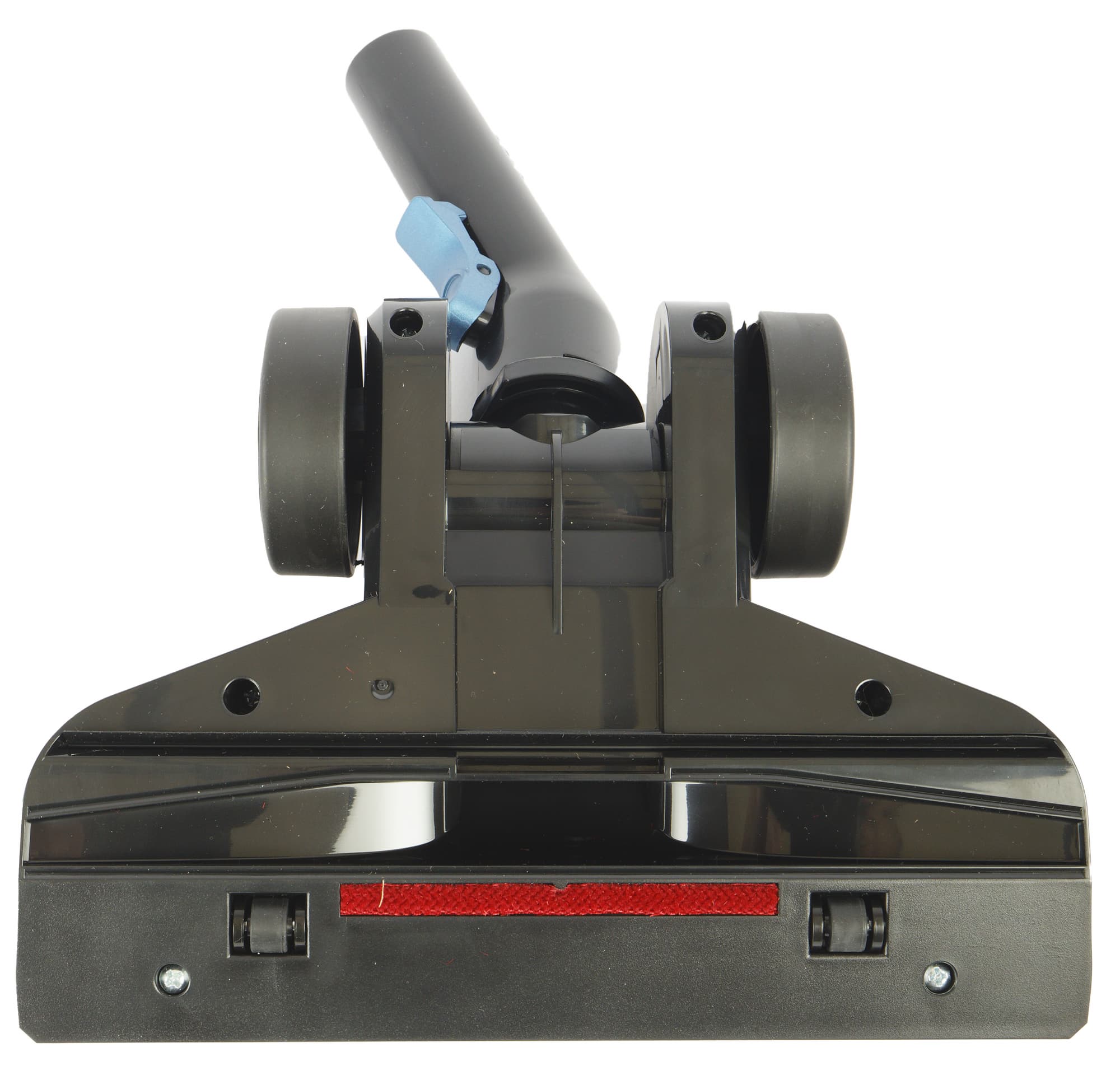 Насадка опирается на два больших колеса в пяточной части и два ролика поменьше на переднем конце. Для облегчения скольжения тут применяется также небольшая велюровая полоска, а для лучшего прилегания к поверхности предназначен резиновый ламель позади центрального отверстия.