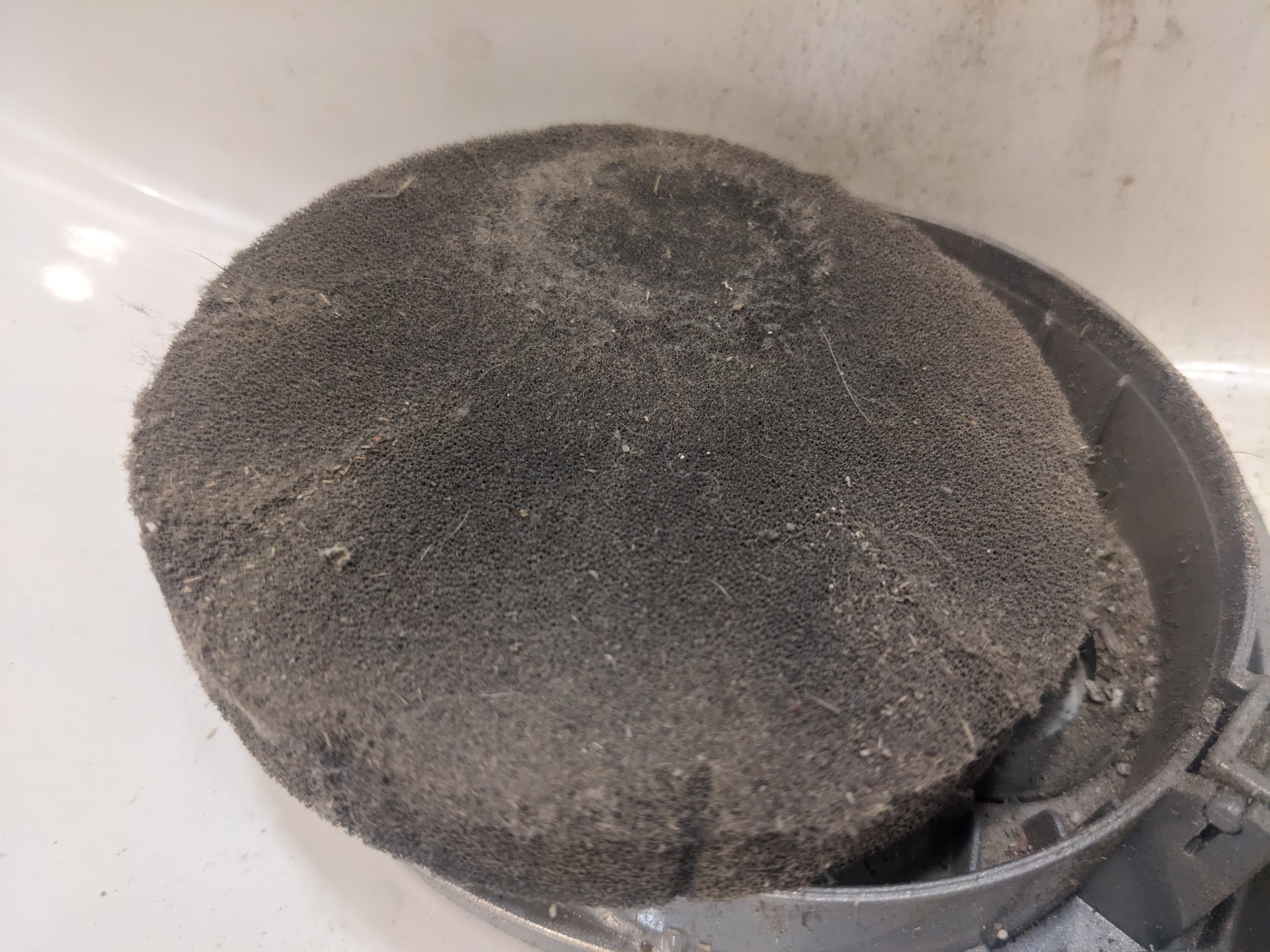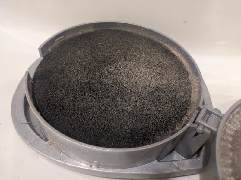 Поролон, конечно, служит не слишком серьезным препятствием для мелкой пыли, но разница между внутренней и внешней поверхностью пористого диска налицо.