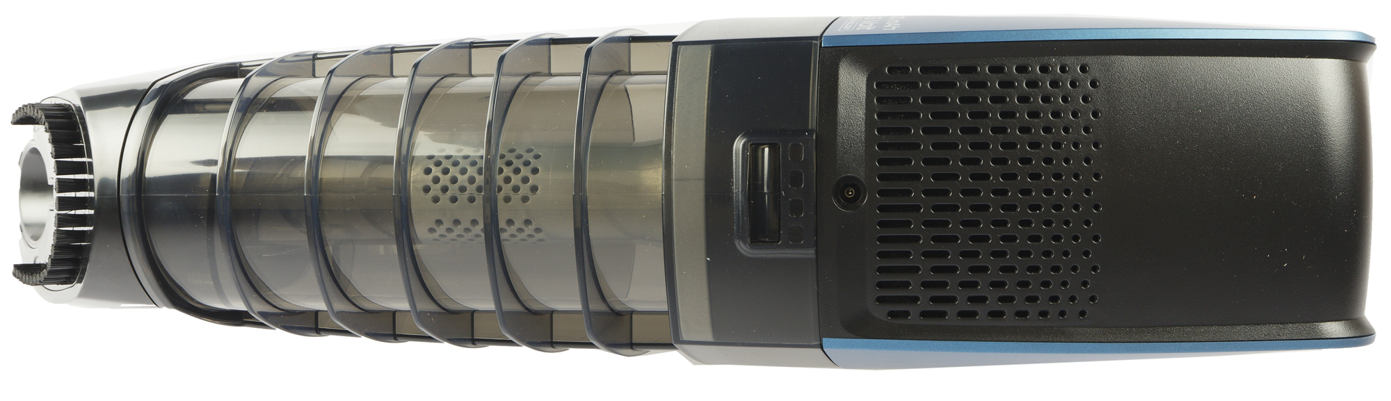 Всю переднюю половину продолговатого корпуса занимает мусоросборник весьма внушительного (1,3 литра) объема. Он надежно удерживается с помощью защелки на верхней стороне.