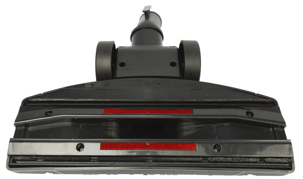 Для чистки ковров эту щетку лучше опустить, а для гладких полов — поднять, чтобы нижняя поверхность плотно прилегала к полу. Скольжение по паркету, ламинату и плитке облегчают две красные велюровые полоски.