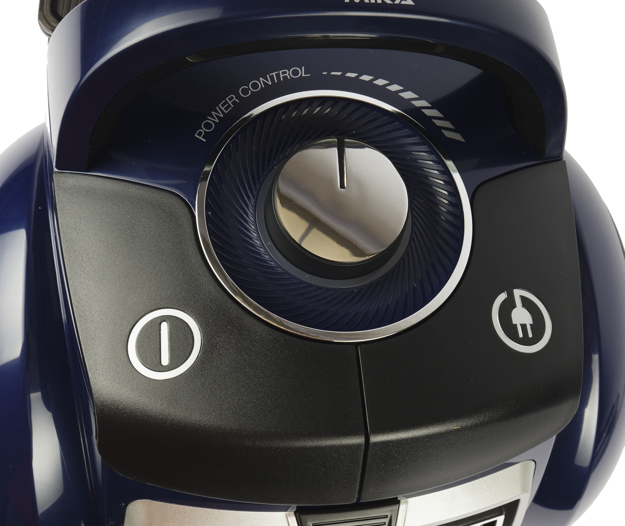 Круглая рукоятка между ними регулирует мощность всасывания. Регулятор вращается плавно, его ход от минимального до максимального положения составляет примерно 270 градусов.