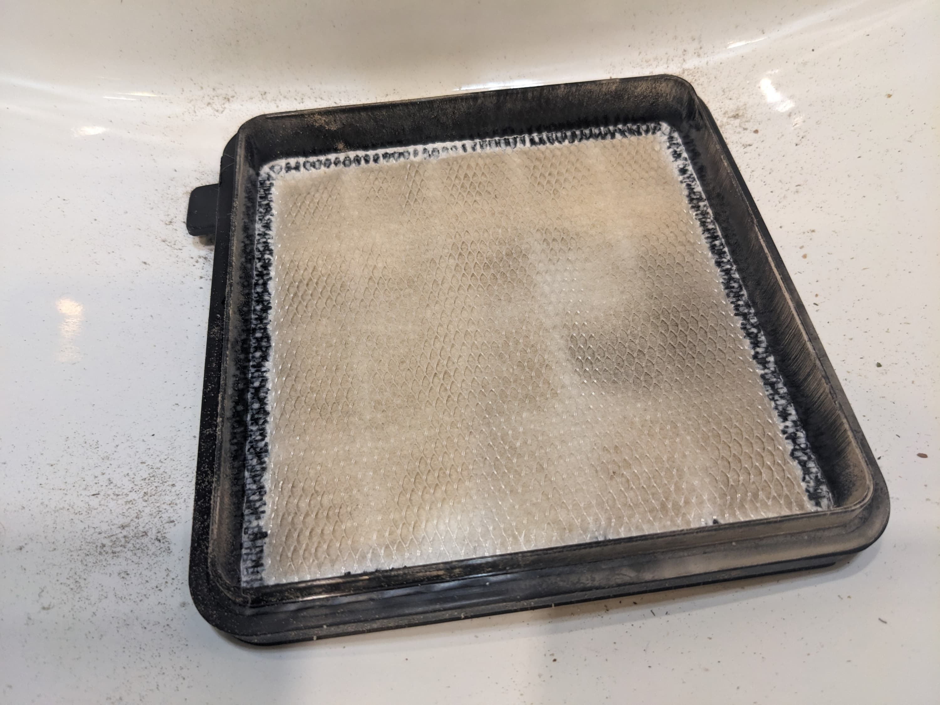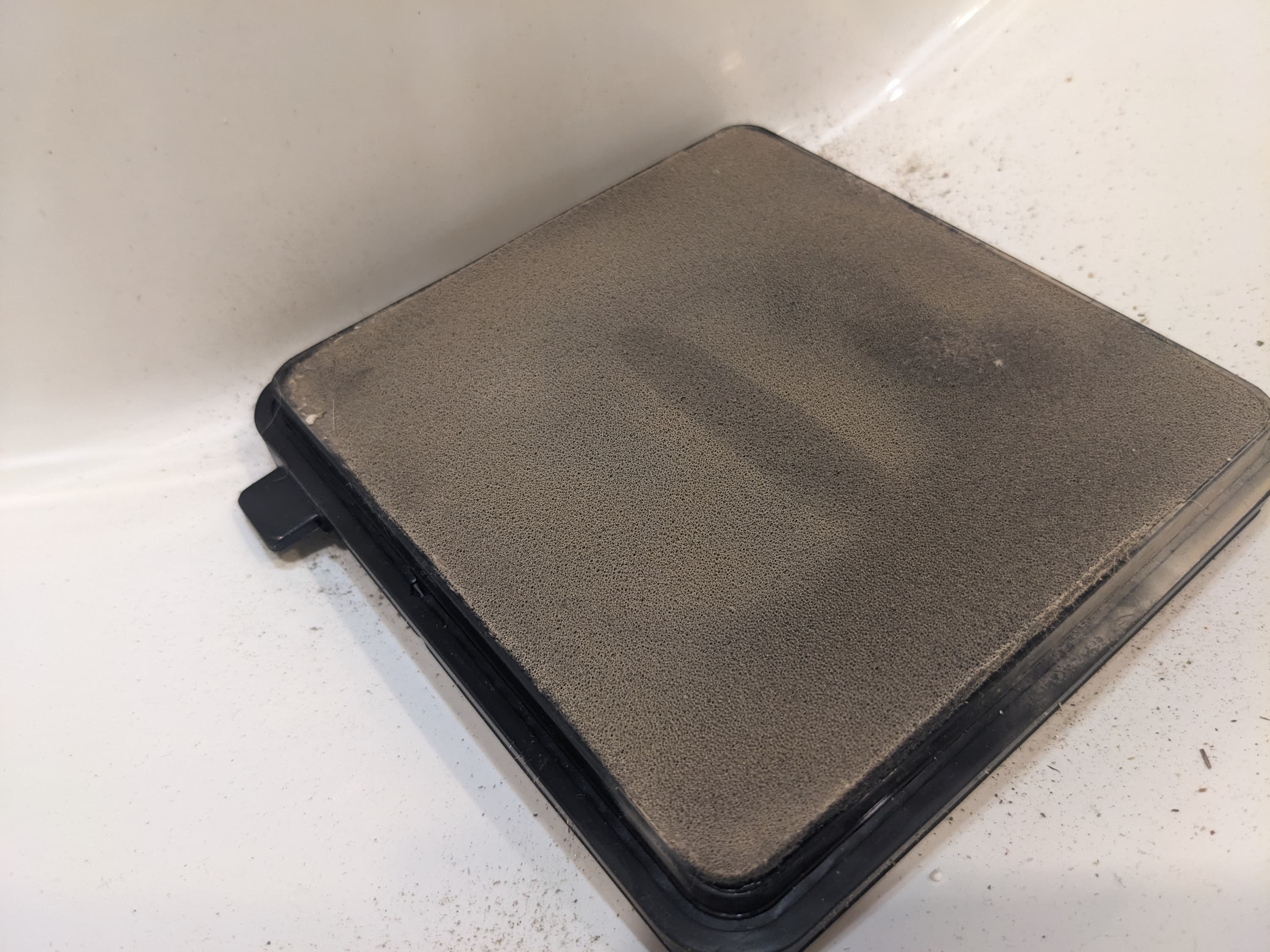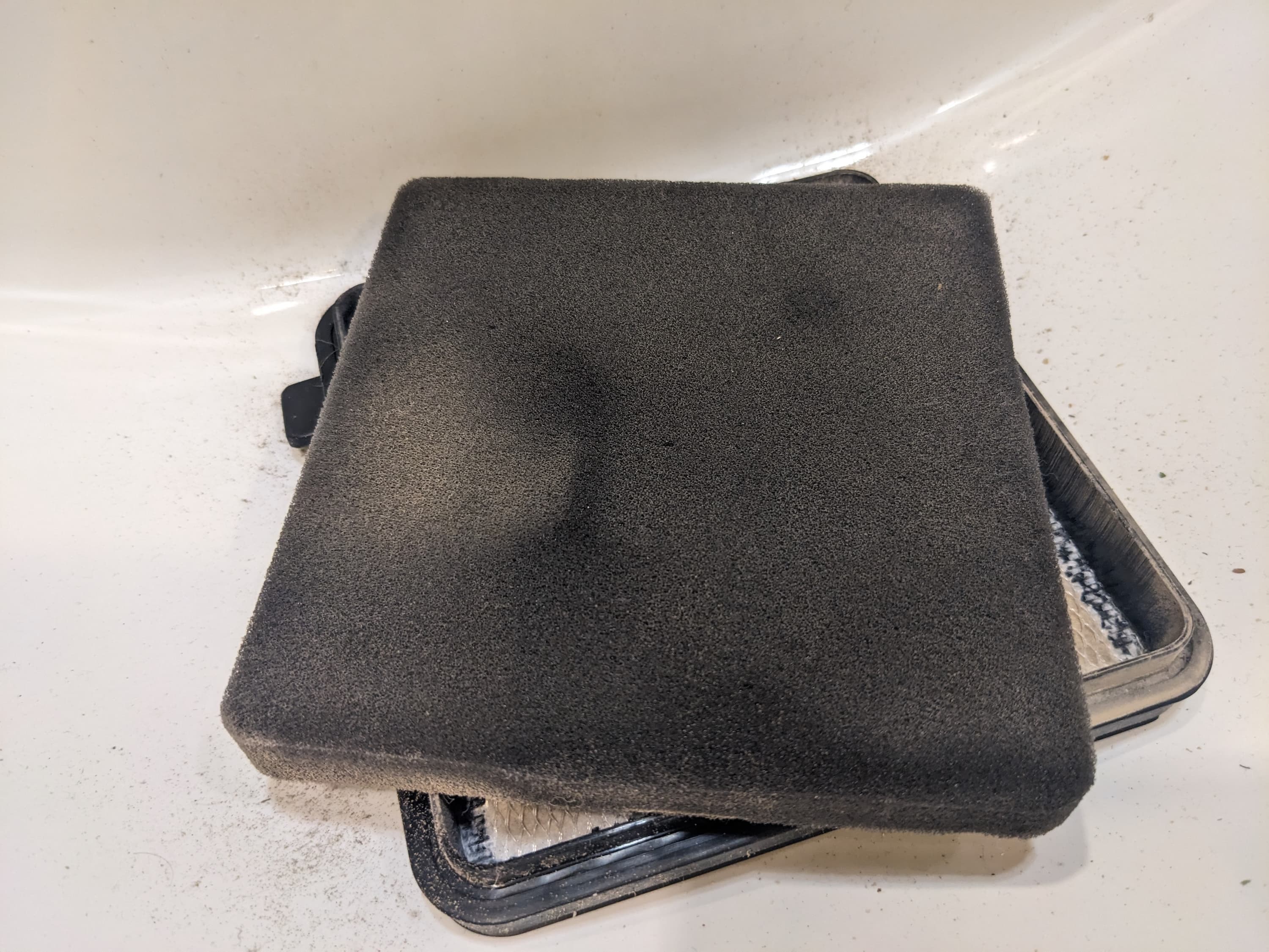 До второго фильтра долетает только мелкая пыль, которая тут и оседает. Причем заметная ее часть остается в отсеке перед фильтром и на предварительном фильтре из поролона, который все загрязнения не удерживает, однако защищает следующий за ним элемент.