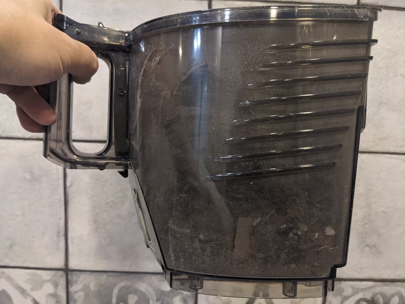 Темные стенки контейнера не позволяют хорошо видеть его содержимое, а мелкая пыль, оседающая на внутренних элементах, еще сильнее затрудняет контроль.