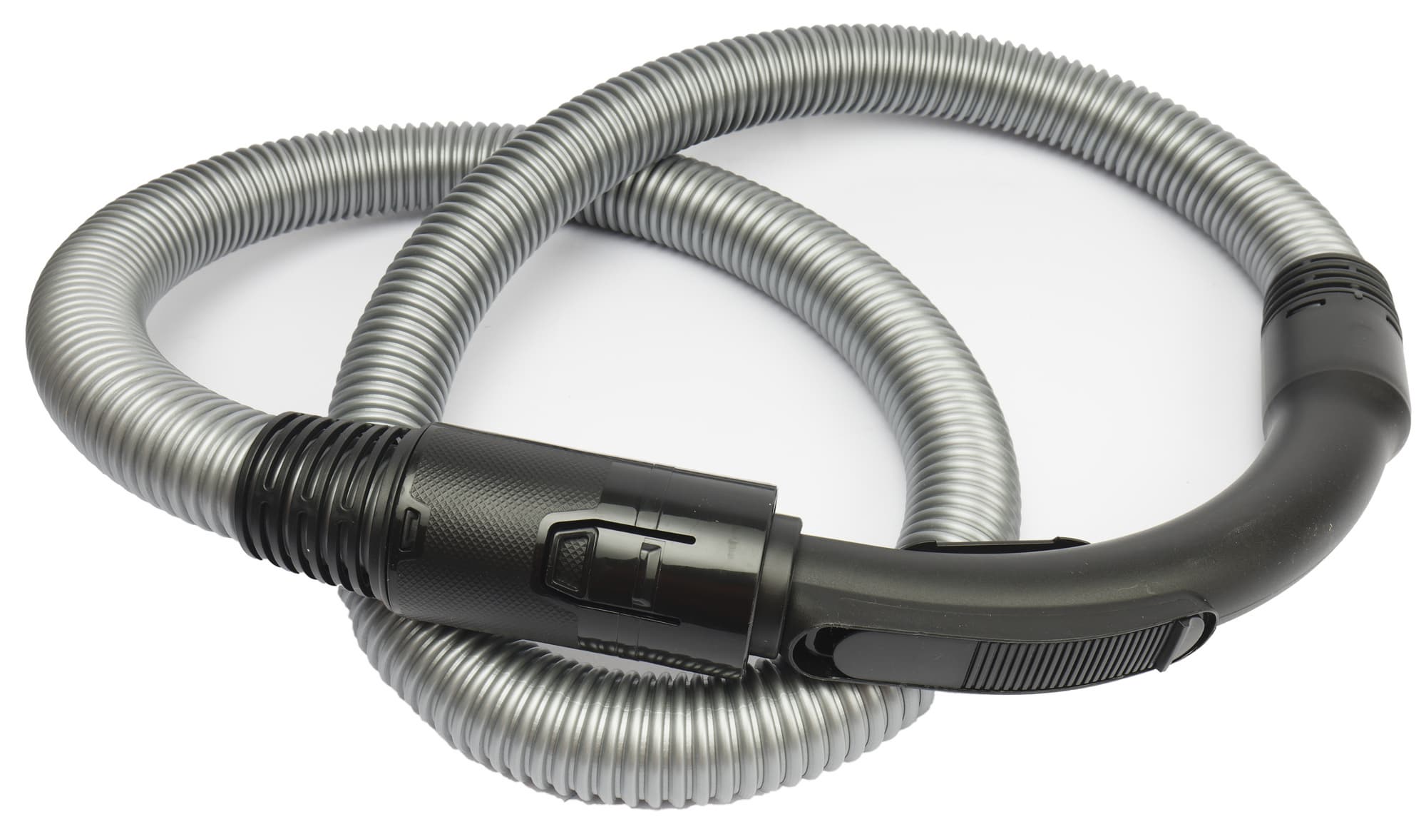 Серебристый пластиковый гофрированный шланг длиной около 2 метров снабжен механическим регулятором всасывания на конце. Других возможностей управлять мощностью у этой модели нет.