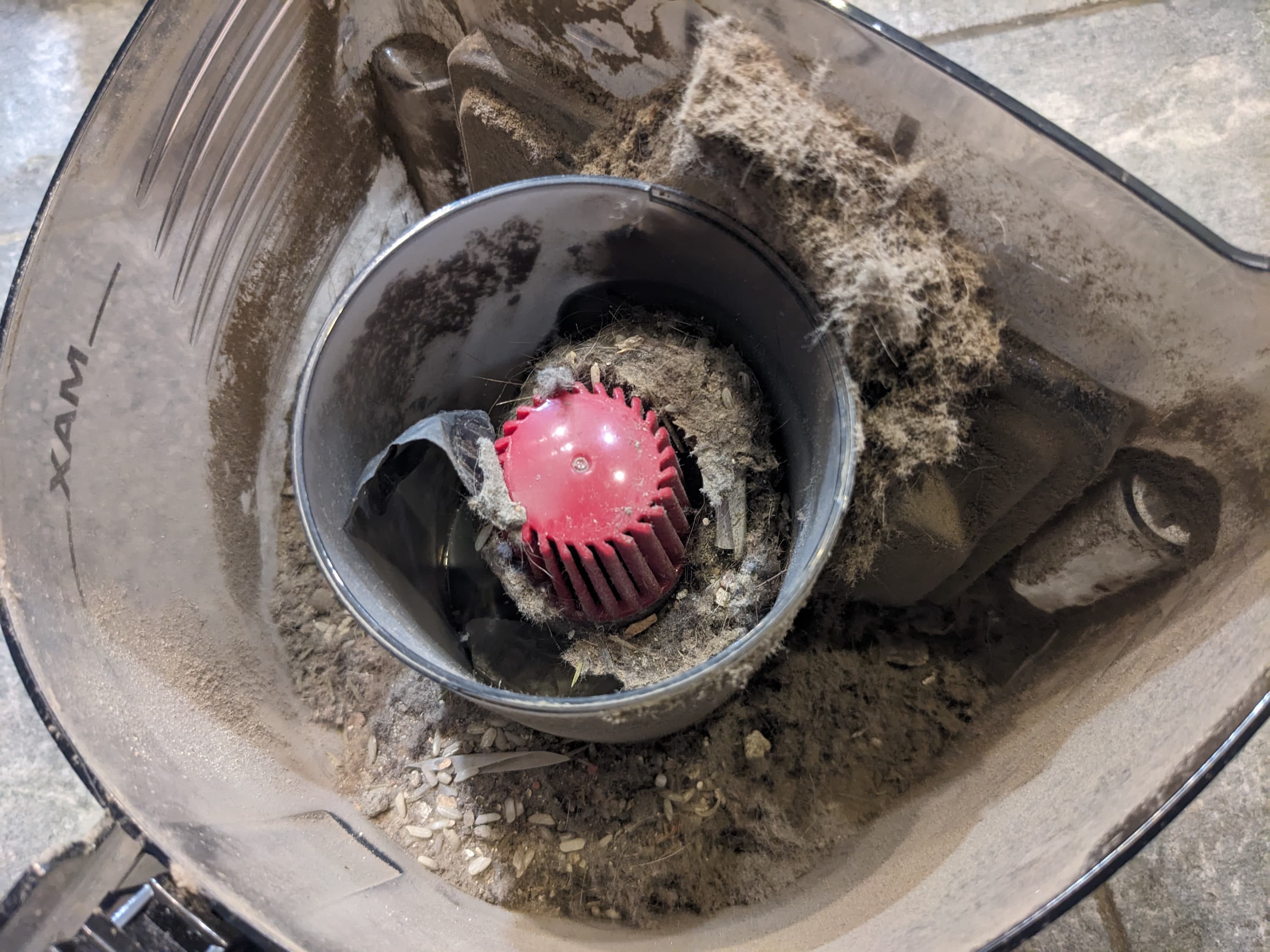 Хотя большая часть загрязнений остается во внешней емкости, некоторое количество мелкого мусора и даже крупных фрагментов все-таки попадает в центральную трубу.