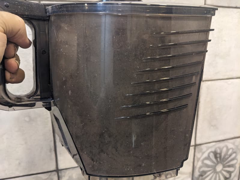 Через полупрозрачные стенки мусоросборника довольно сложно контролировать заполнение емкости. Мелкая пыль, покрывающая внутренние поверхности стенок, еще сильнее осложняет контроль.