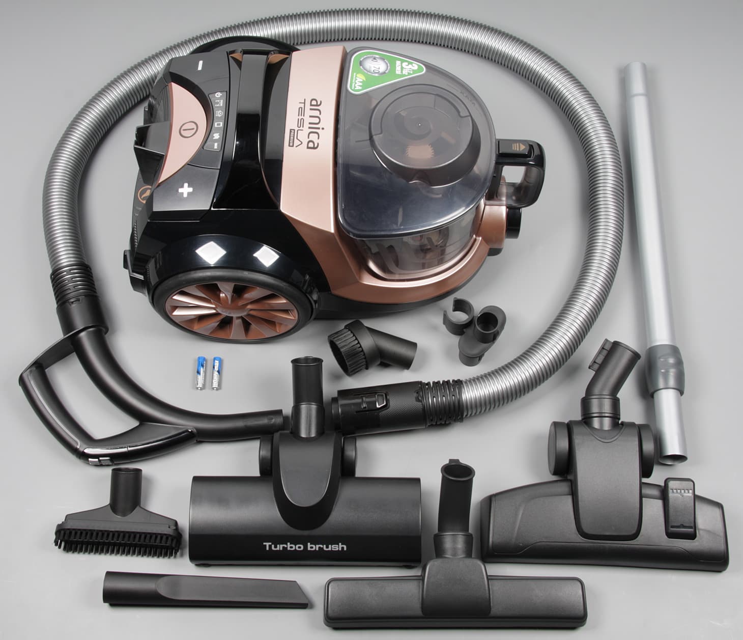 Представляем обзор безмешкового пылесоса Arnica Tesla Premium, оснащенного циклонной системой фильтрации Cyclone Max, фильтром НЕРА-13 и дистанционным управлением на рукоятке. В комплект его поставки входят универсальная щетка пол/ковер Super AirFlow floor brush, турбощетка для глубокой очистки ковровых покрытий, паркетная щетка с натуральным конским ворсом и другие насадки.