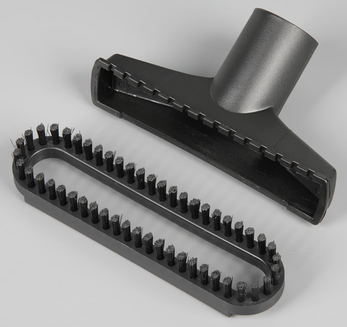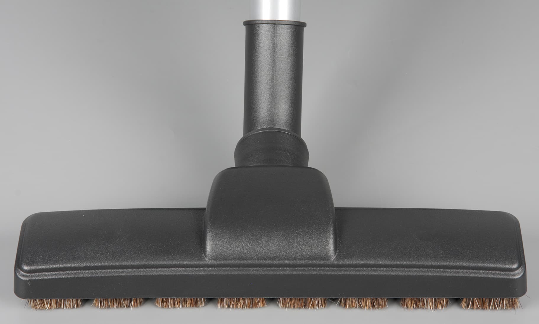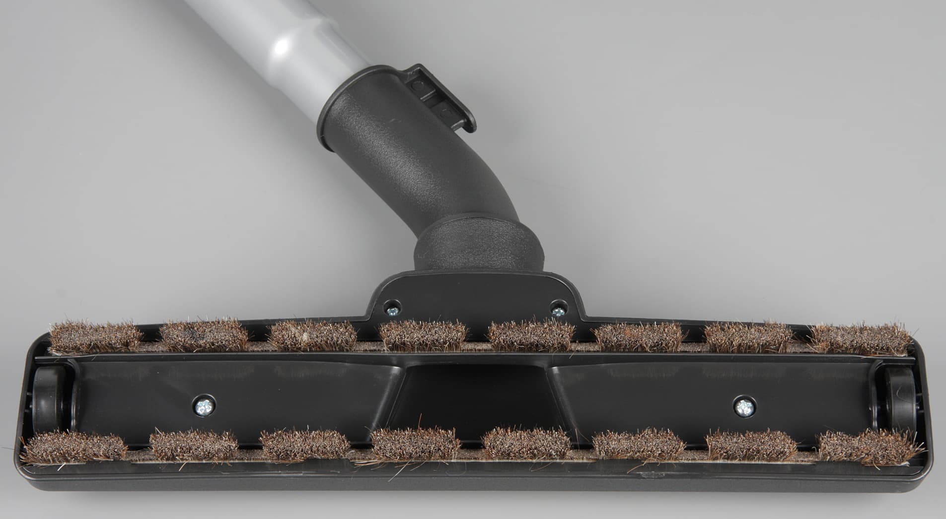 Следующая насадка — это простая по конструкции щетка для уборки твердых поверхностей. Снизу насадка имеет два ряда натурального конского ворса высотой 13 мм с вырезами для захвата крупного мусора.