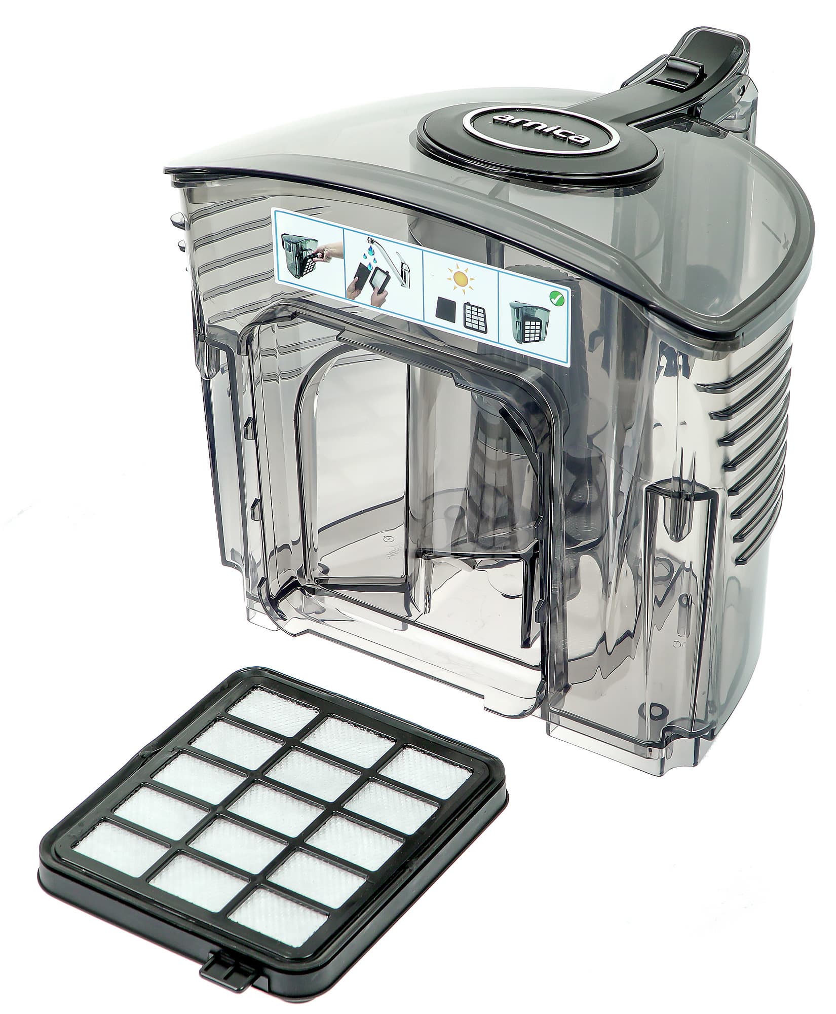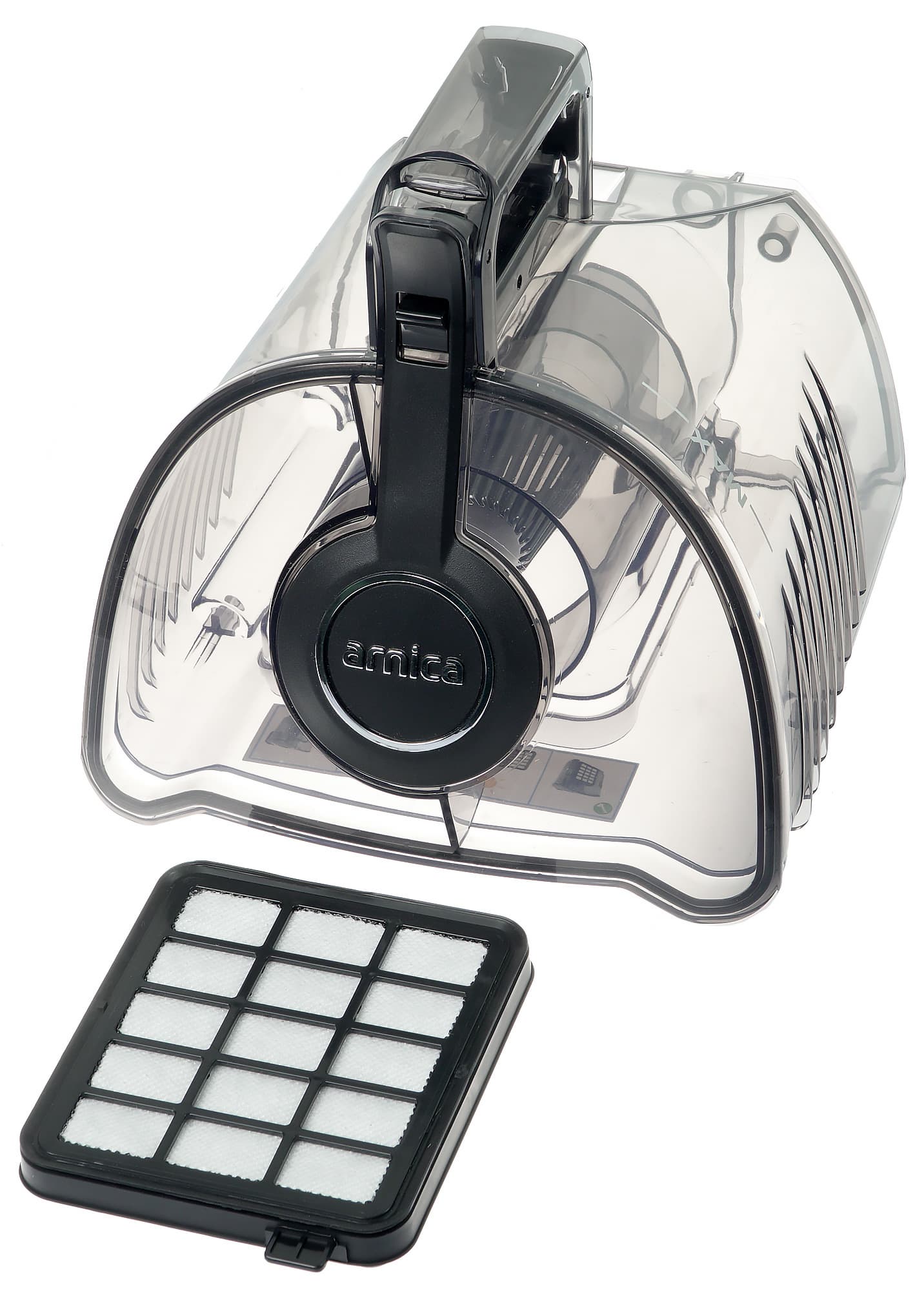 Примечательно, что взаимозаменяемость фильтрующих элементов характерна для пылесосов Arnica: одни и те же HEPA- и поролоновые фильтры подходят к моделям Tesla, Terra, Pika, Mila, Vesta и Lotus. По утверждениям производителя, используется HEPA-фильтр типа Electrolux EFH 12, который устанавливается в модели Electrolux, Philips, LG и многих других производителей, так что купить его можно в практически в любом магазине, где вообще продаются HEPA-фильтры для пылесосов.