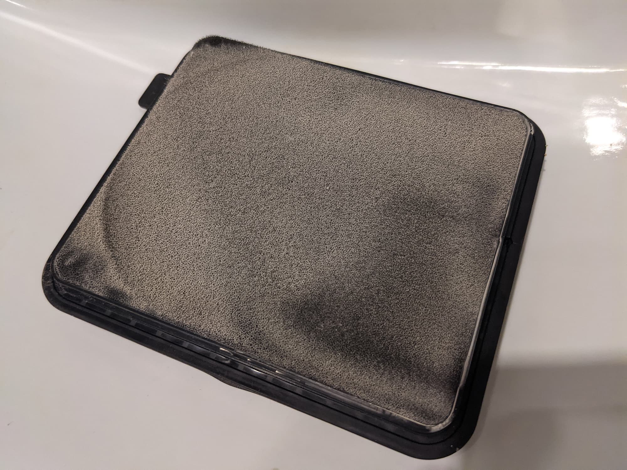 Пыль хорошо заметна на обеих поверхностях поролоновой губки: разумеется, поролон сам по себе не способен удержать все загрязнения.