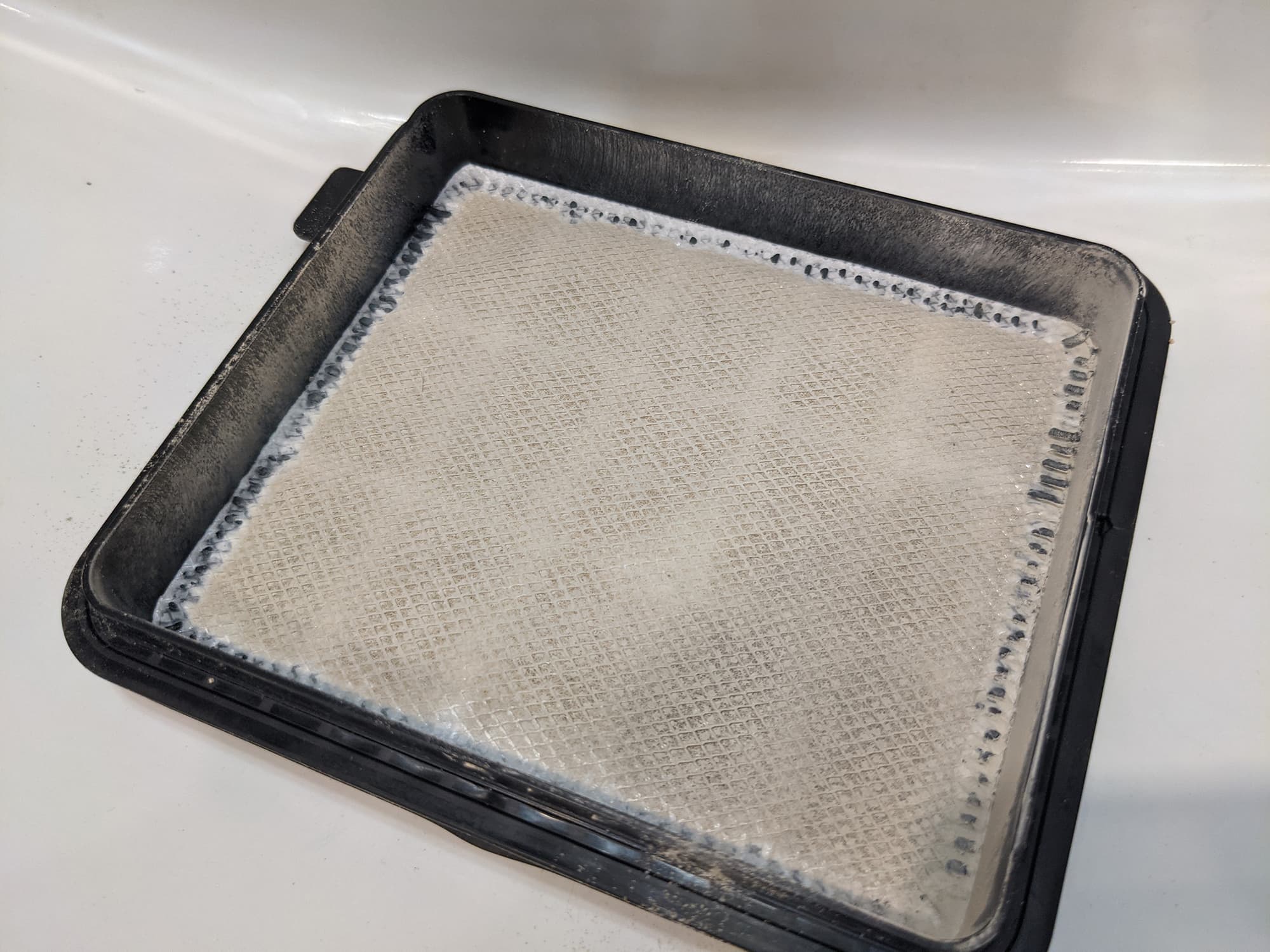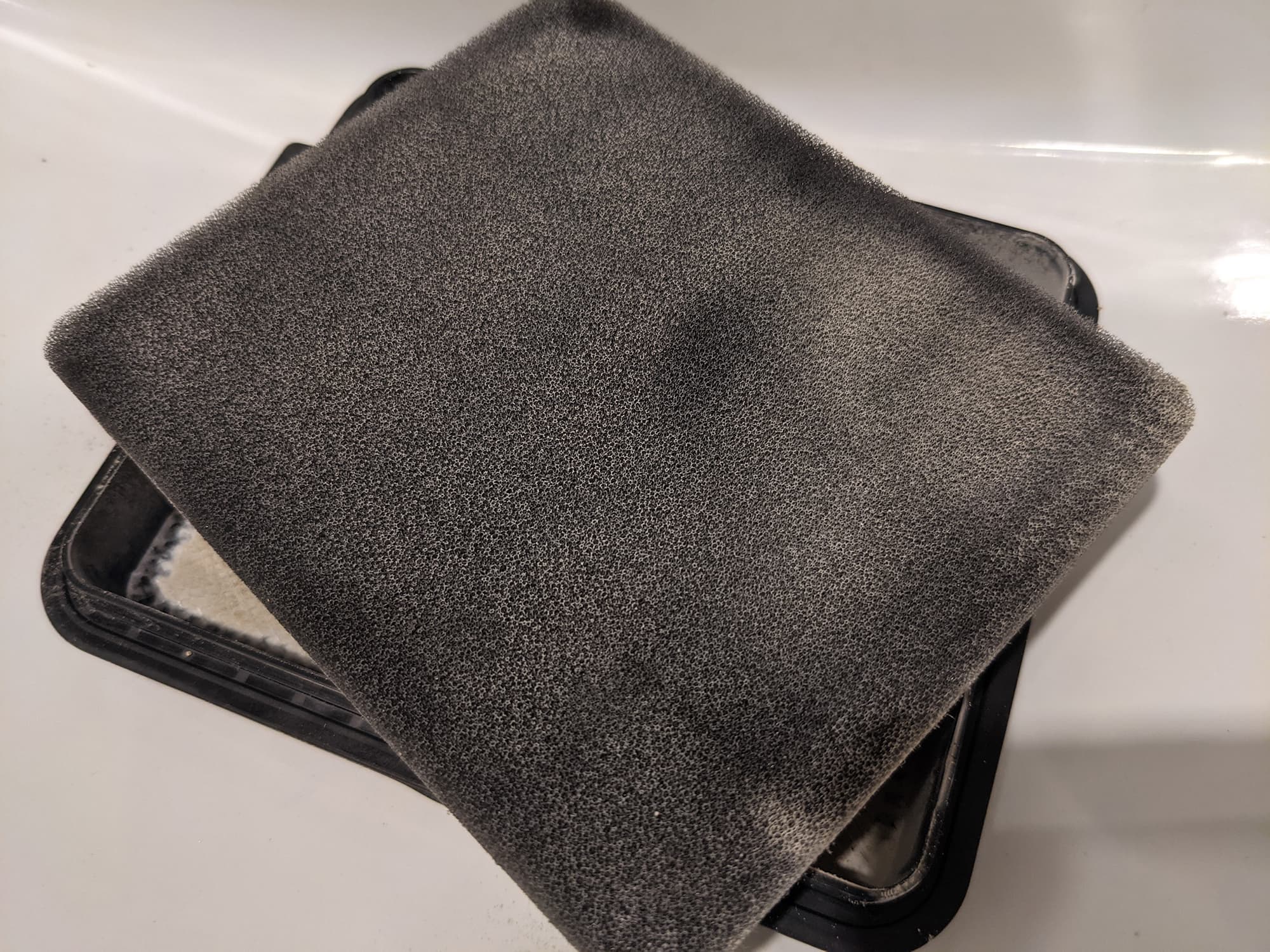 Последний представляет собой квадратный «бутерброд» из нетканого материала, защищенный пластиковой решеткой и снабженный резиновым уплотнителем по периметру. Перед нетканым фильтром располагается предварительный, из черного поролона.