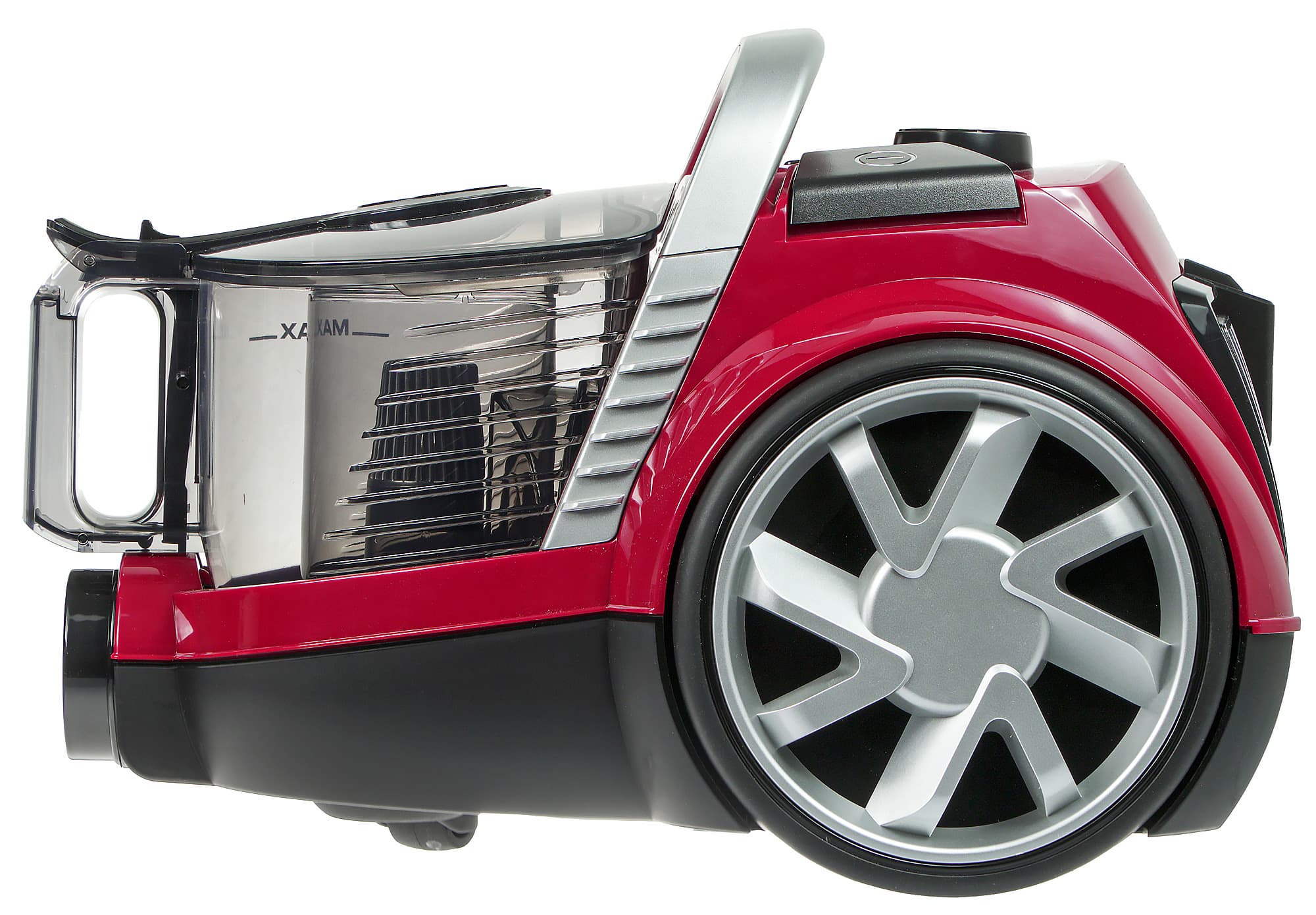 Между ними расположена ручка регулировки мощности, поворачивающаяся примерно на 270°. Сила всасывания регулируется плавно, без скачков и посторонних звуков.