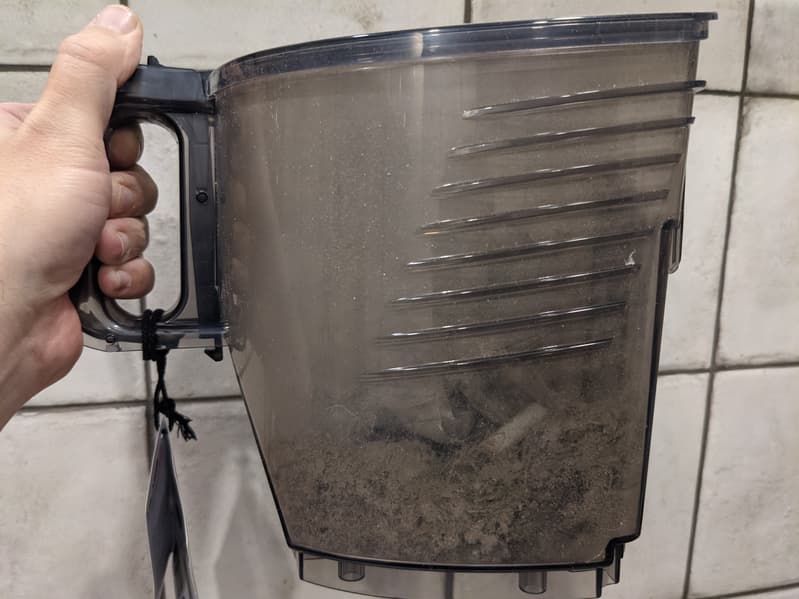 С помощью обоих пылесосов мы сделали несколько полноценных уборок помещения и остались довольны результатами. В процессе тестирования мы использовали один и тот же блок мусоросборника, переставляя его с одного устройства на другое, но, как ни старались, за пару недель так и не смогли наполнить 2,5-литровый контейнер до максимальной отметки: его емкость превысила наши возможности по генерации пыли в трехкомнатной квартире.
