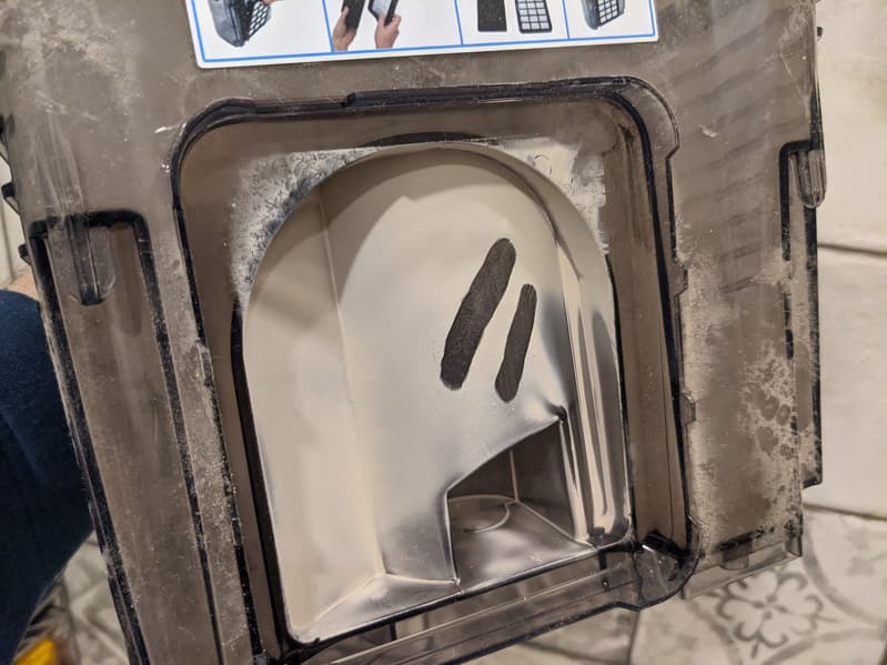 Мелкая пыль оседает на втором фильтре и в отсеке перед ним. Как в центральном элементе циклона, тут нет ни единого фрагмента крупного мусора.