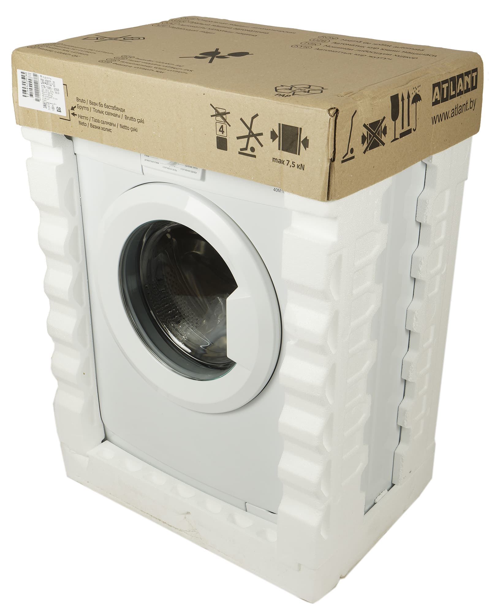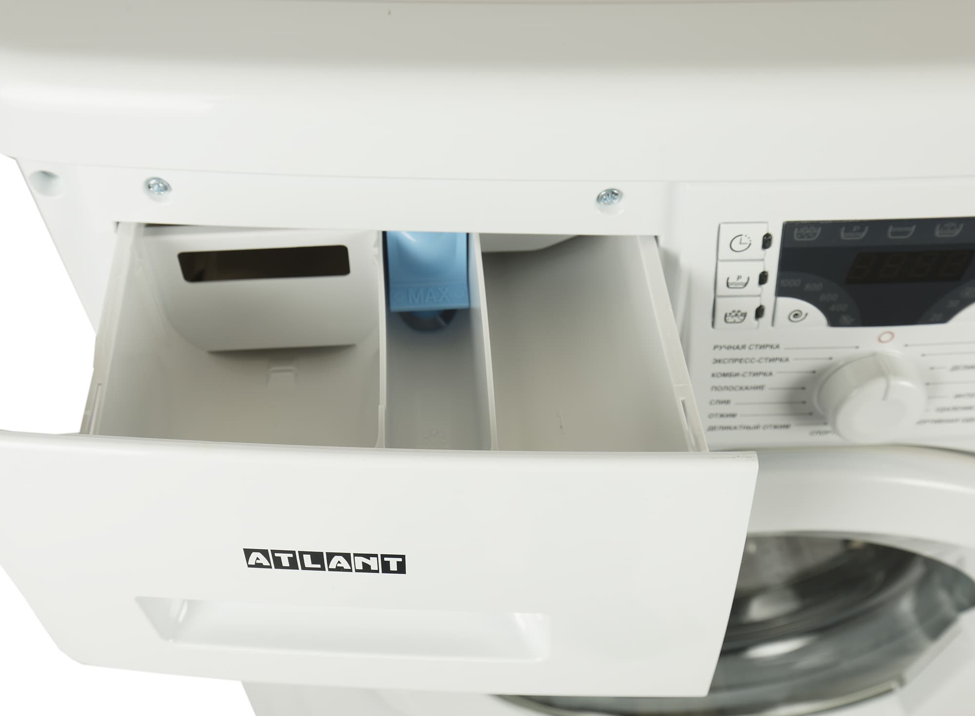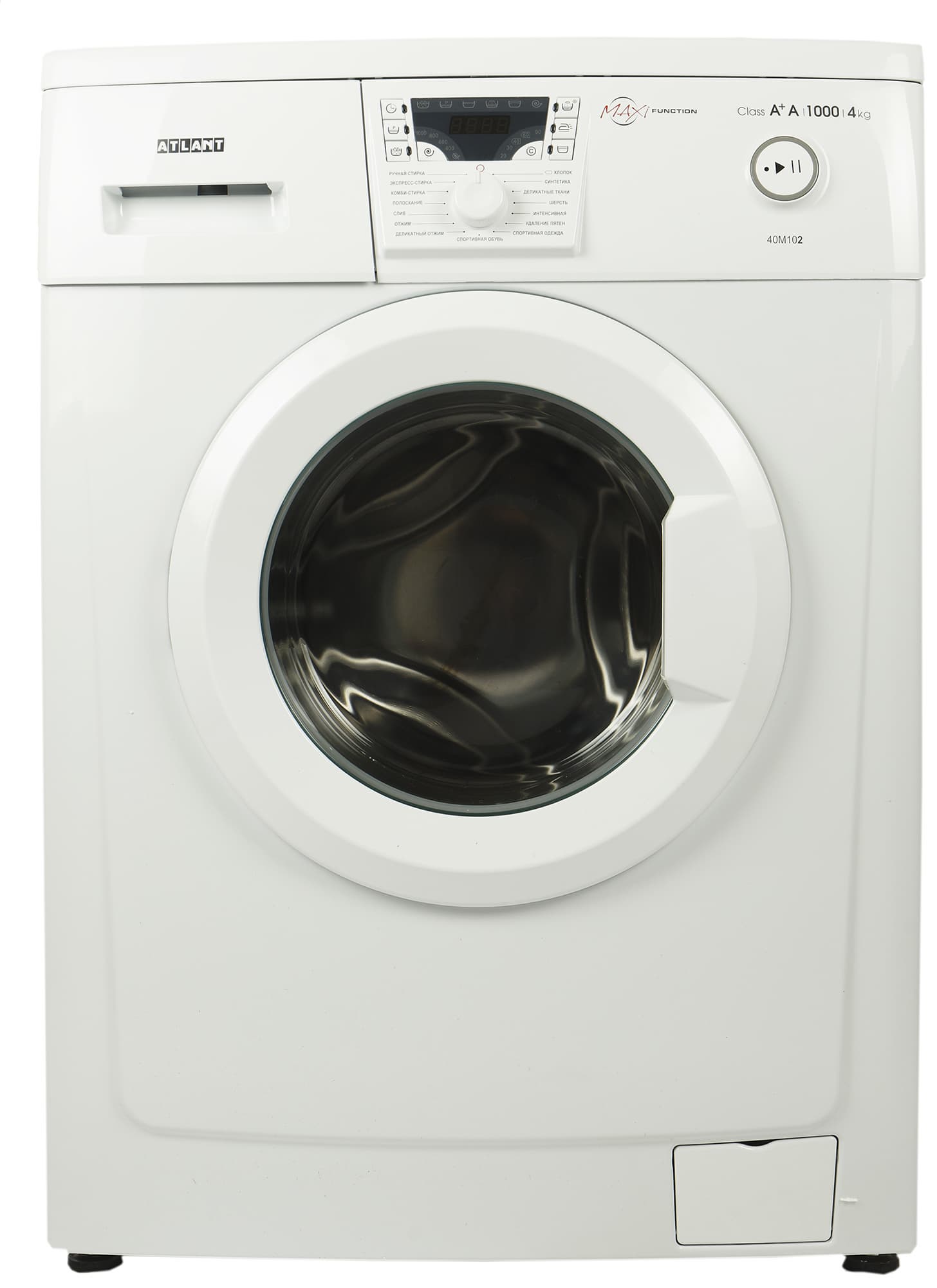 Атлант CMA 40M102-00 относится к классу сверхкомпактных стиральных машин: глубина ее корпуса составляет всего 328 мм. С учетом выступающих деталей (панели управления, ручек и элементов крышки барабана) максимальный габарит оказывается чуть больше: 38,7 см.