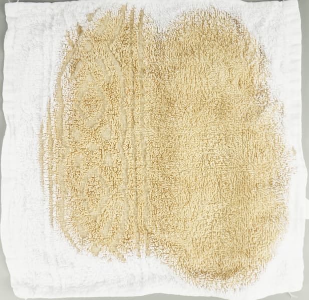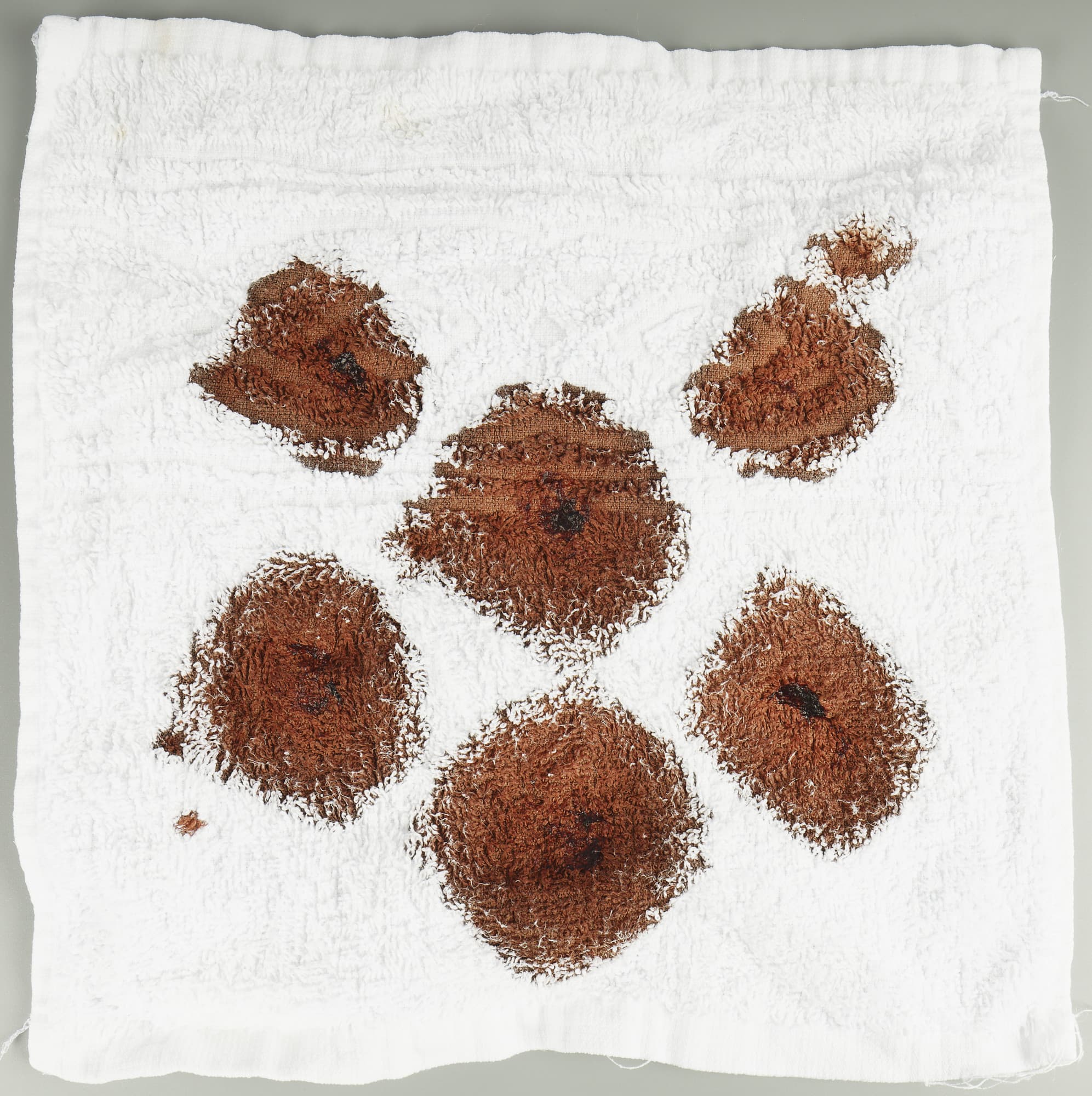 Хорошее повтори: белый хлопок снова расцвечен теми же пятнами.
