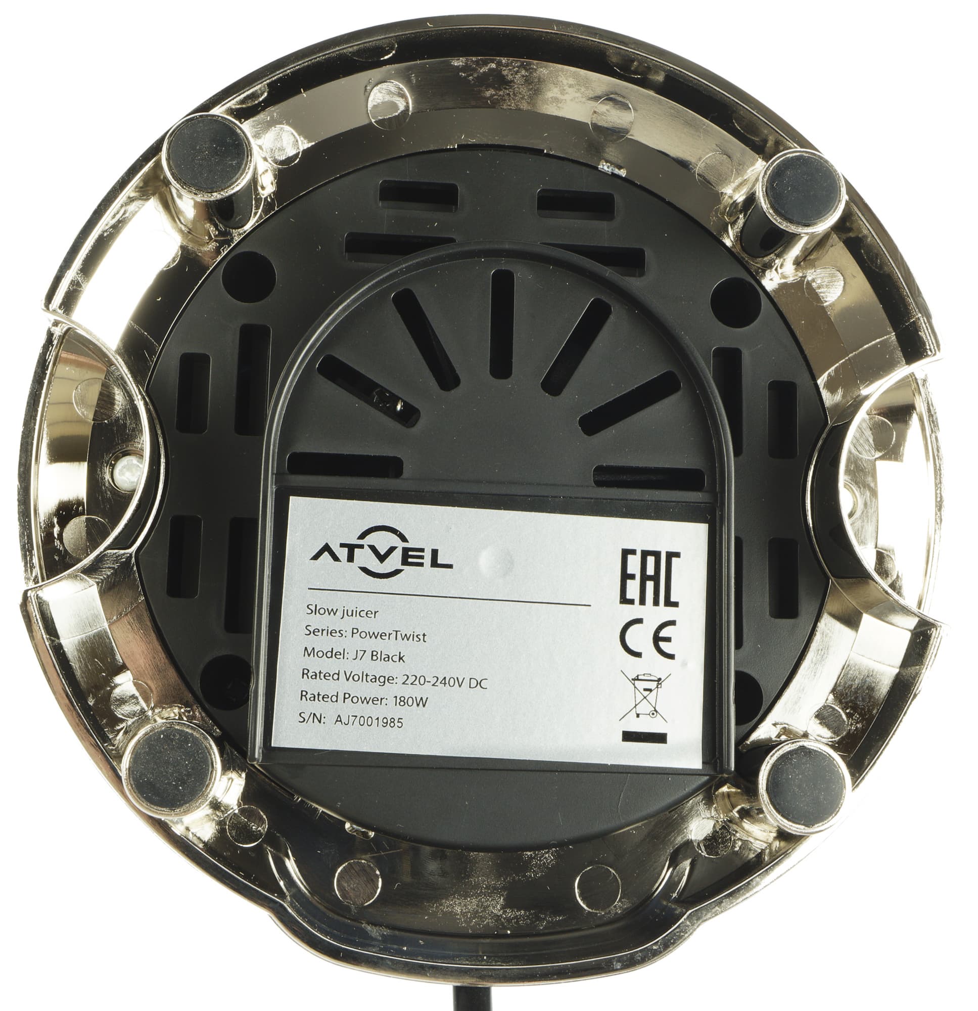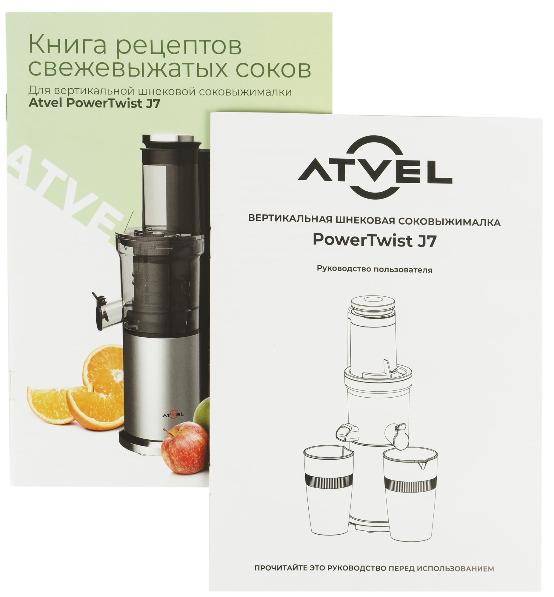 Компактная шнековая соковыжималка Atvel PowerTwist J7 — это очень удобный и приятный в работе прибор. Сборка и чистка устройства не доставляют хлопот. Ножки с противоскользящими накладками способствуют устойчивому сцеплению с поверхностью стола и полностью гасят вибрацию. Уровень шума умеренный и не создает дискомфорта.
