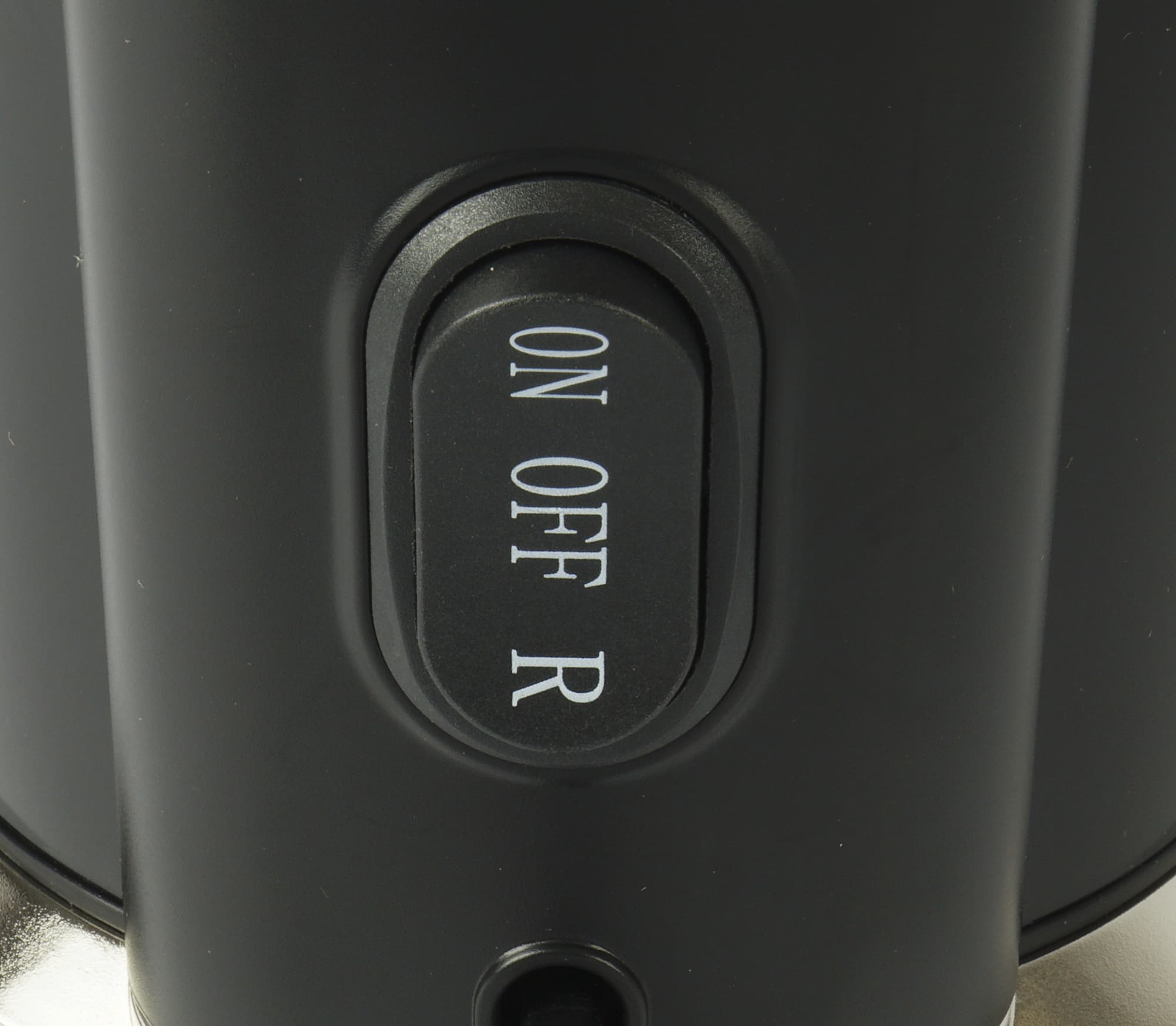 Скорость, соответственно — одна. Нажатием на верхнюю часть кнопки прибор включается, обратным движением выключается. При нажатии кнопки вниз и удержании ее в таком положении — запускается реверсивный режим работы. Напомним, если крышка загрузочной горловины не закрыта, прибор работать не начнет. Если крышка открылась в процессе работы более, чем на 2 см, вращения шнека останавливается. Чтобы возобновить вращение, достаточно закрыть крышку.