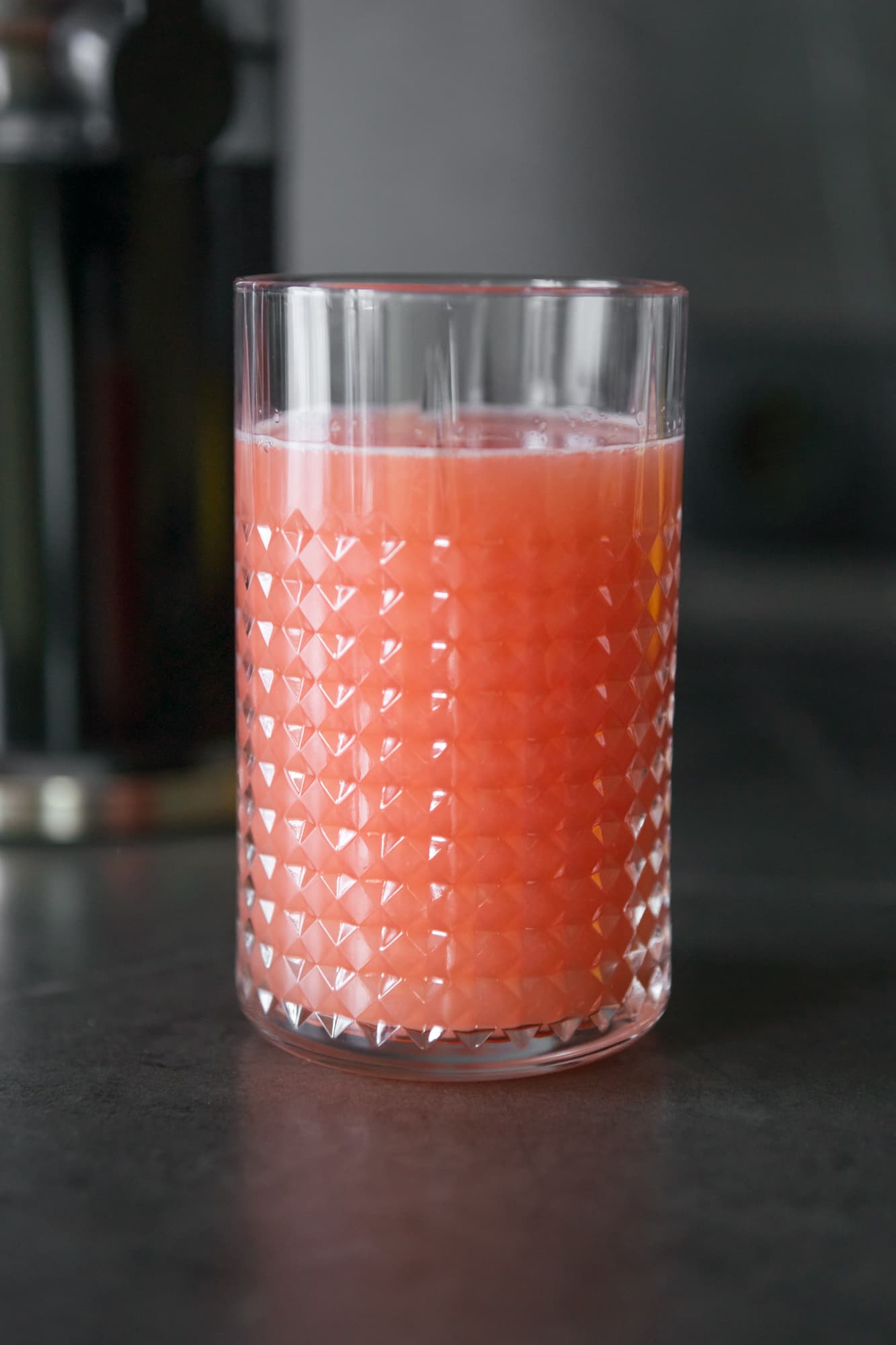 Жмых умеренно влажный, микроскопическая мякоть в соке ощущалась с каждым глотком. В середине процесса контейнер для отходов пришлось опустошать.