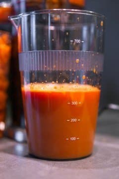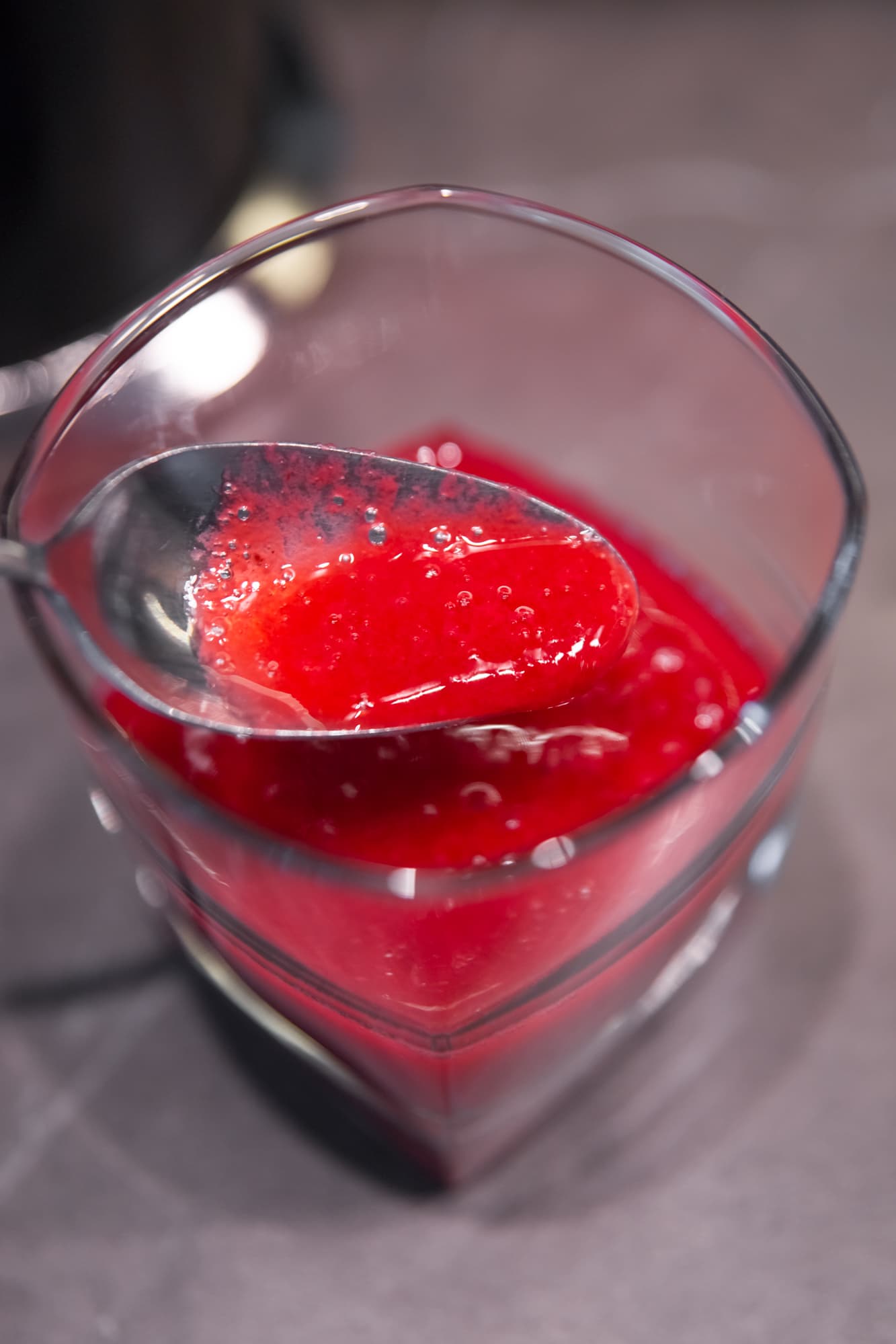 За 1 минуту и 26 секунд из 200 г размороженной красной смородины было выжато ровно 100 г густого насыщенного сока.