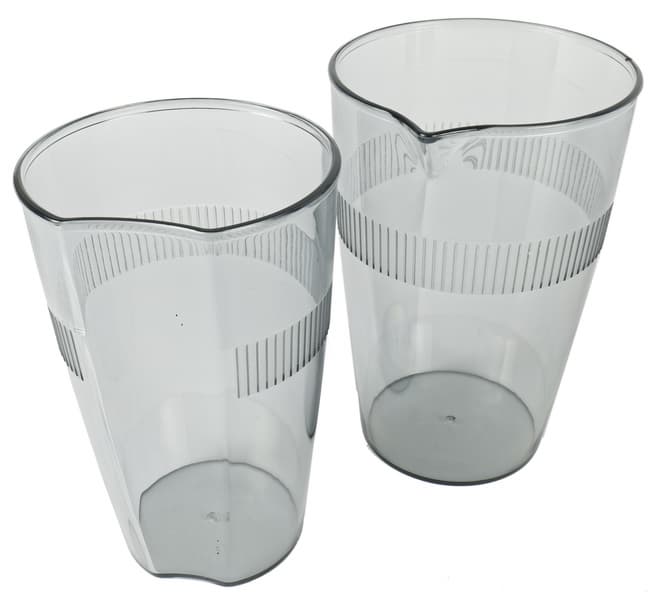 Объем чаши для сока по верхнюю риску — 700 мл. На емкости для жмыха отметок нет, по информации из документов в него помещается до 650 мл. На деле же, 650 — это совсем до краев, так что реальный рабочий объем чуть меньше. Чаша имеет одну вогнутую сторону, что позволяет ей вставать к корпусу вплотную. Контейнер для жмыха запросто помещается в чашу для сока, что экономит место при хранении.