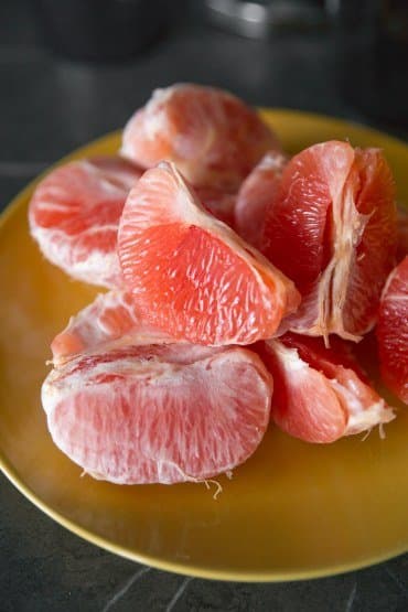 Один килограмм грейпфрута был по возможности очищен от белых пленок и разделен на дольки.