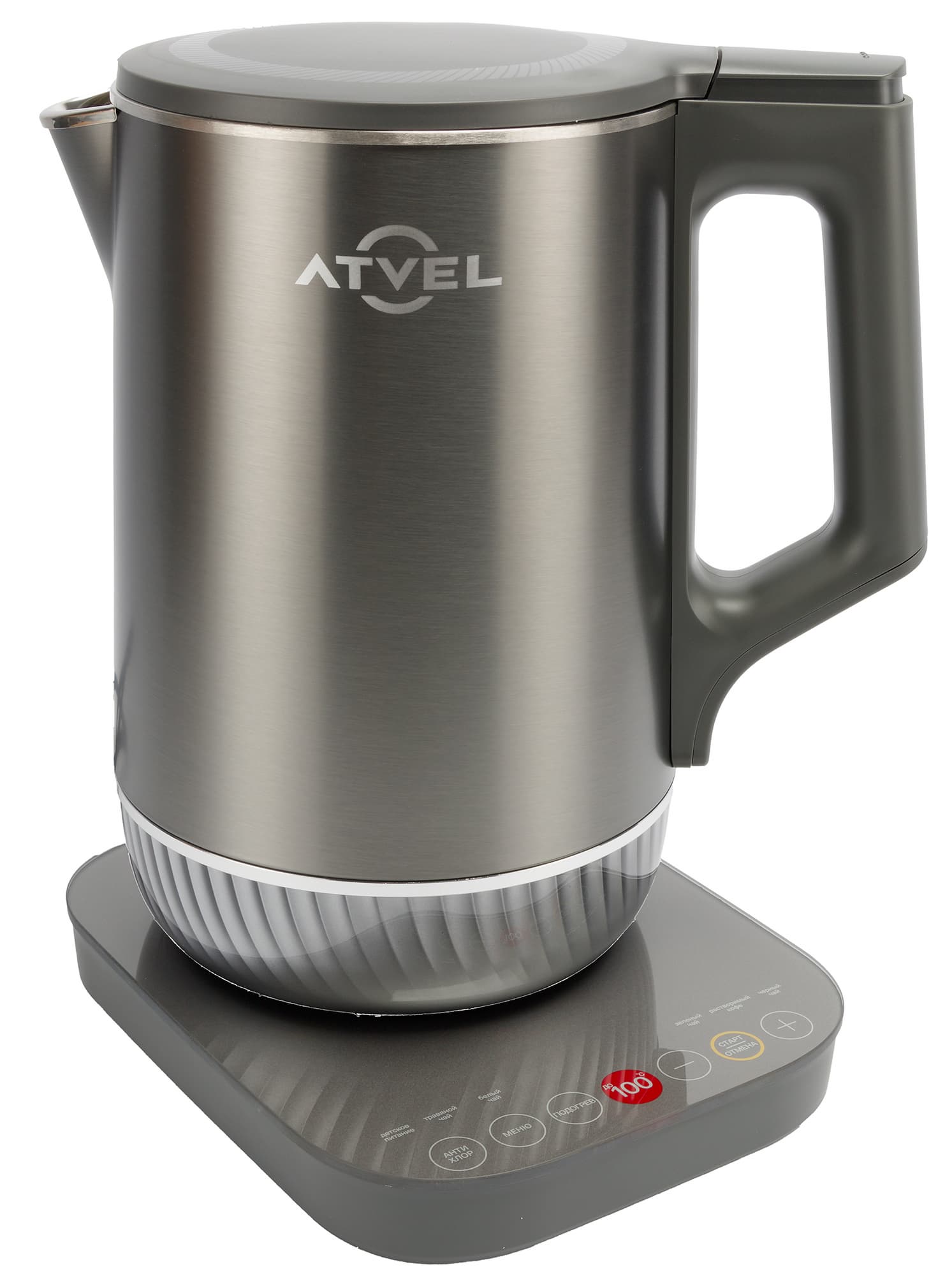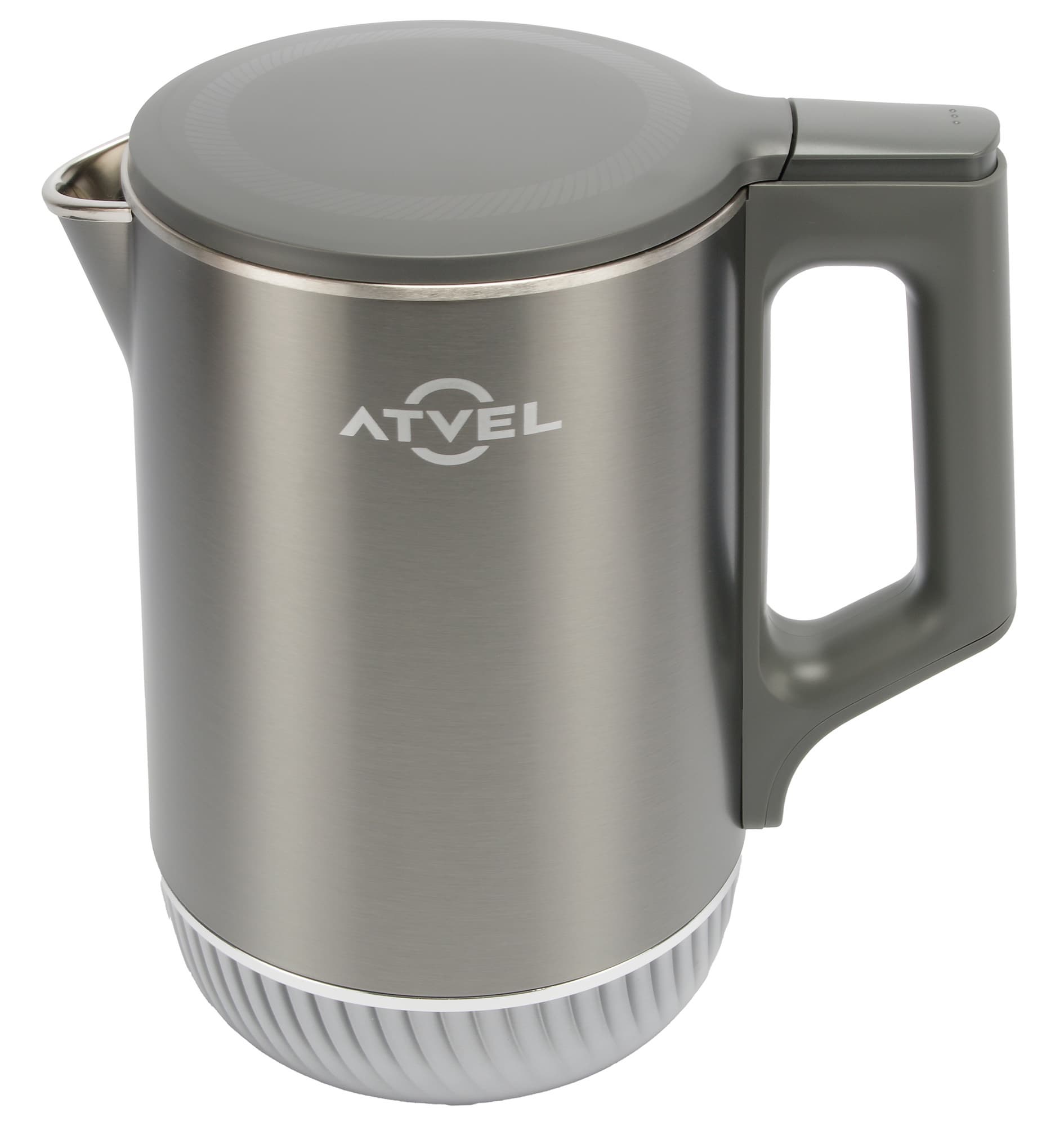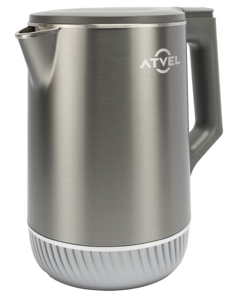 Atvel Silence K5 41101 — чайник с цельнометаллической колбой и двойными стенками, обладающий пониженным уровнем шума, гибкой регулировкой нагрева и функцией поддержания тепла в течение 4 часов.