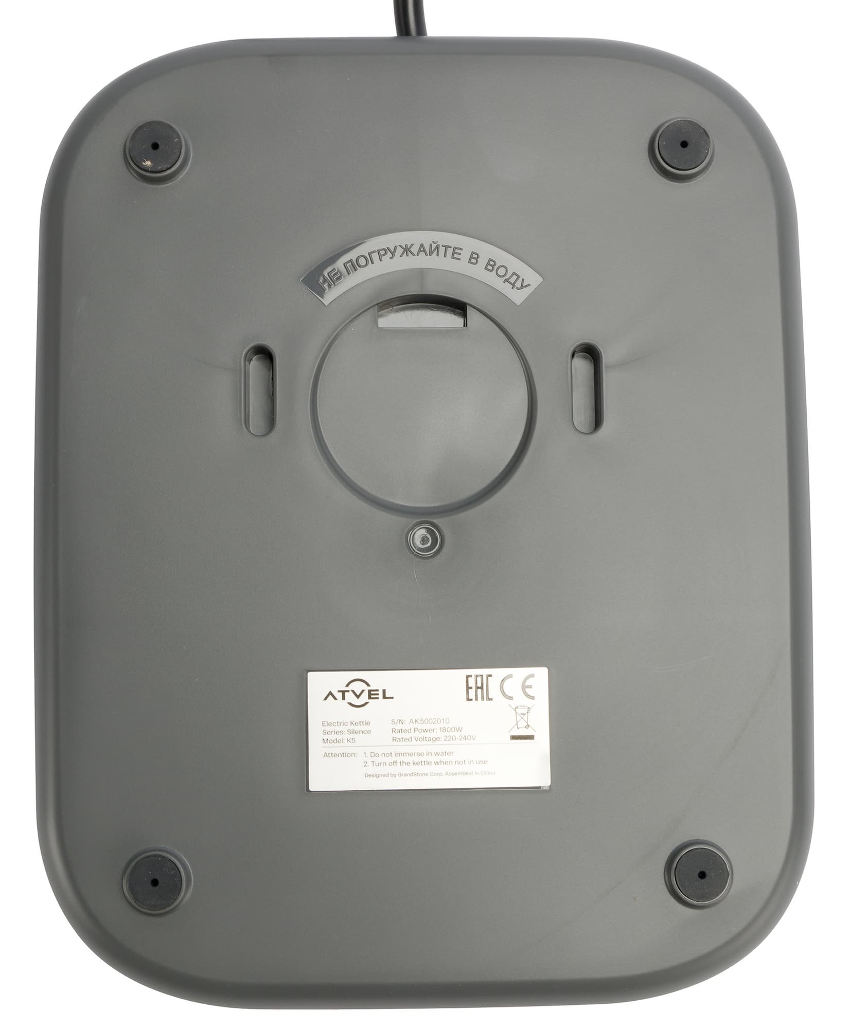 На дне базы находятся четыре невысокие ножки с резиновыми вставками. С тыльной стороны — сетевой шнур длиной 0,8 м.