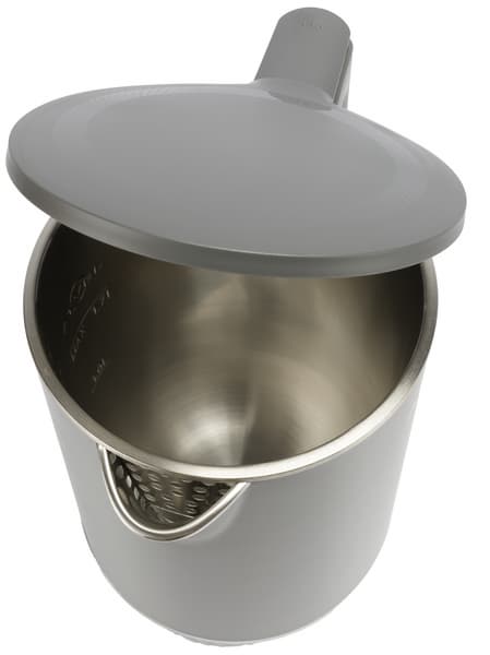В числе прочих преимуществ этой модели — двойные стенки корпуса. Вода в чайнике такой конструкции дольше остается теплой, а внешняя поверхность нагревается не слишком сильно. Мы убедились в этом на практике: даже если дотронуться до чайника сразу после закипания, обжечься об него невозможно. Помимо термоизоляции двухслойный корпус эффективно обеспечивает шумоподавление — уровень громкости закипающего чайника не превышает 50 дБА.