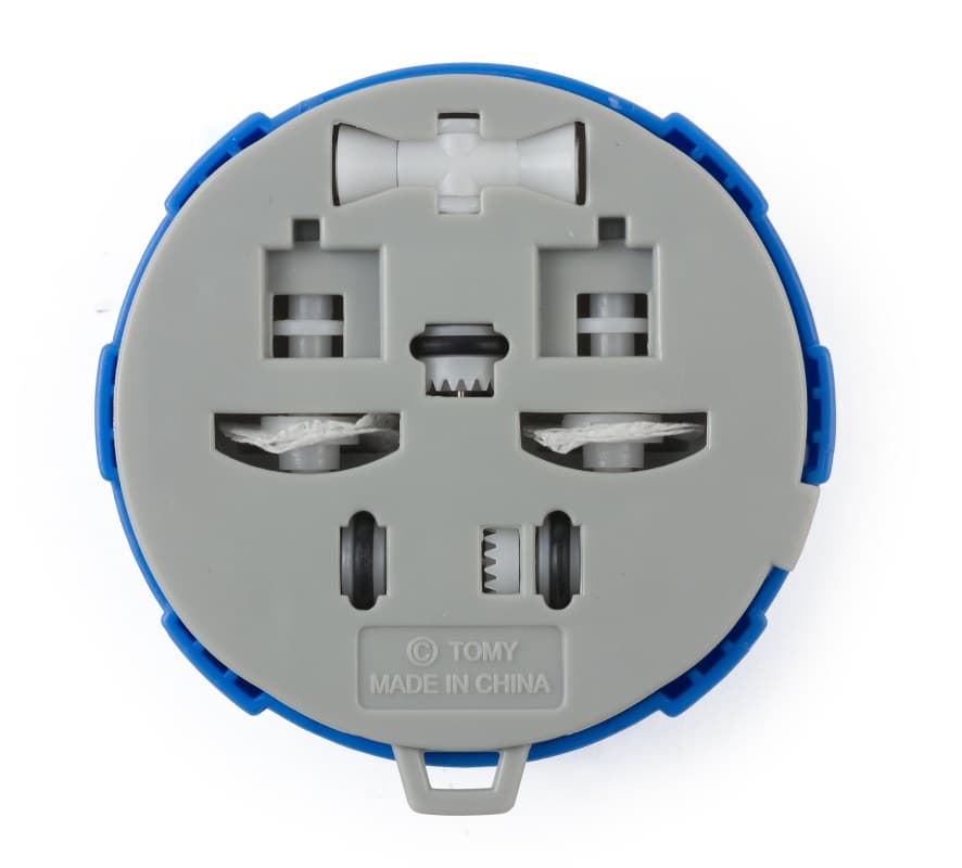 Немного сдвинув основание против часовой стрелки, мы можем снять с уборщика крышку. Под ней находится отсек для пальчиковой батарейки