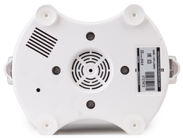 Электропривод довольно тяжел, снизу оснащен резиновыми ножками. Забегая вперед, скажем, что ножки обеспечивают не просто качественное сцепление с поверхностью стола — иногда прибор было довольно сложно отцепить, настолько крепко держались присоски. Вес соковыжималки, видимо, удерживает ее от излишней вибрации в процессе закладки продуктов.