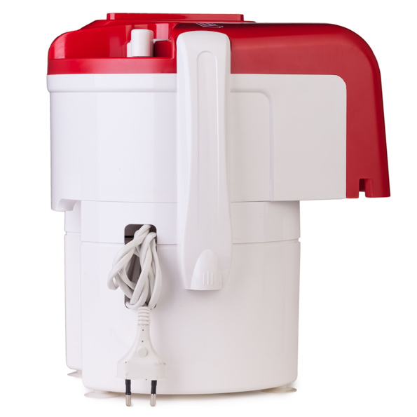 Из приятного: корпус оснащен нишей для хранения шнура. Шнур, кстати, довольно длинный, что позволит эксплуатировать соковыжималку в отдалении от источника электрического тока.